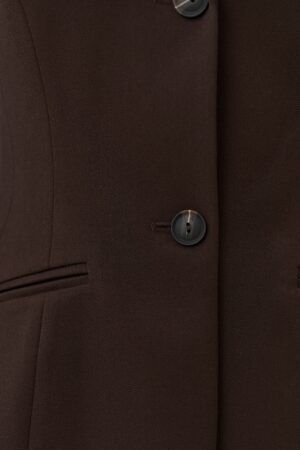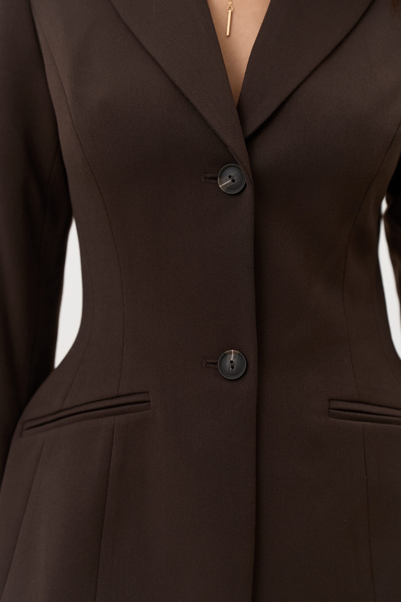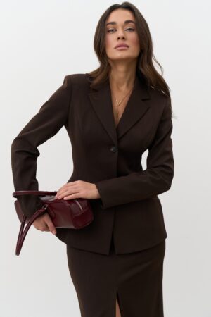 Жіночий піджак шоколадного кольору — елегантна класика з акцентом на талії