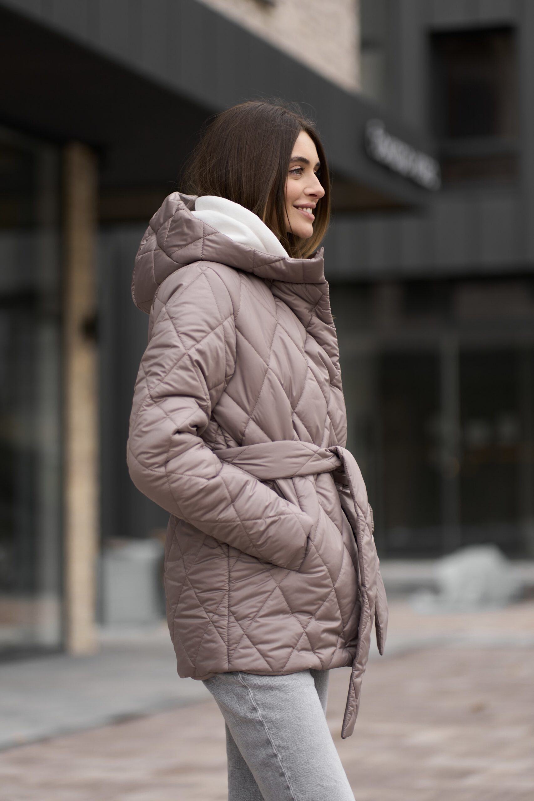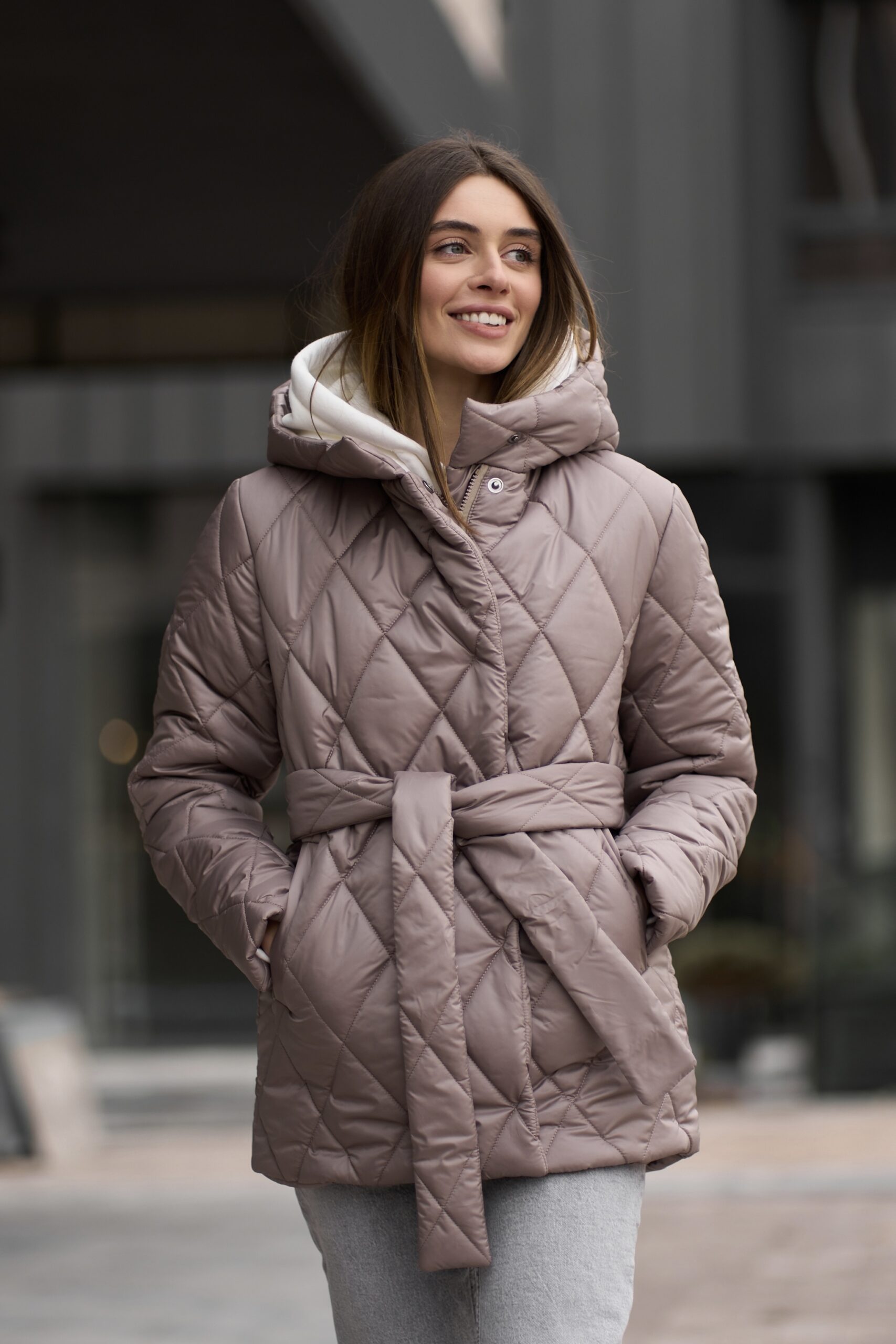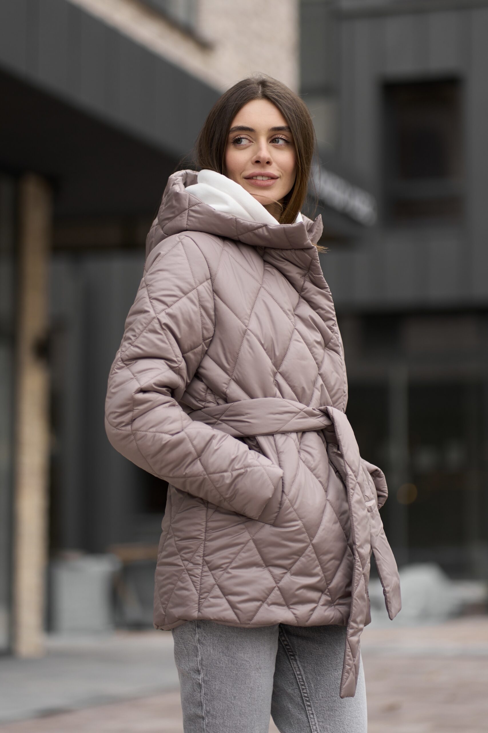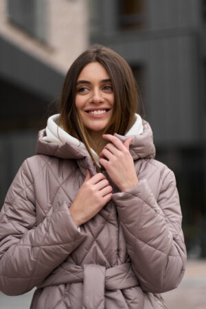Прямий крій із злегка приталеним силуетом додає куртці елегантності та сучасного вигляду. Довжина куртки становить 73 см, що забезпечує додатковий захист від холоду та вітру. Така довжина ідеально підходить для створення стильних образів, які виглядають гармонійно і пропорційно.