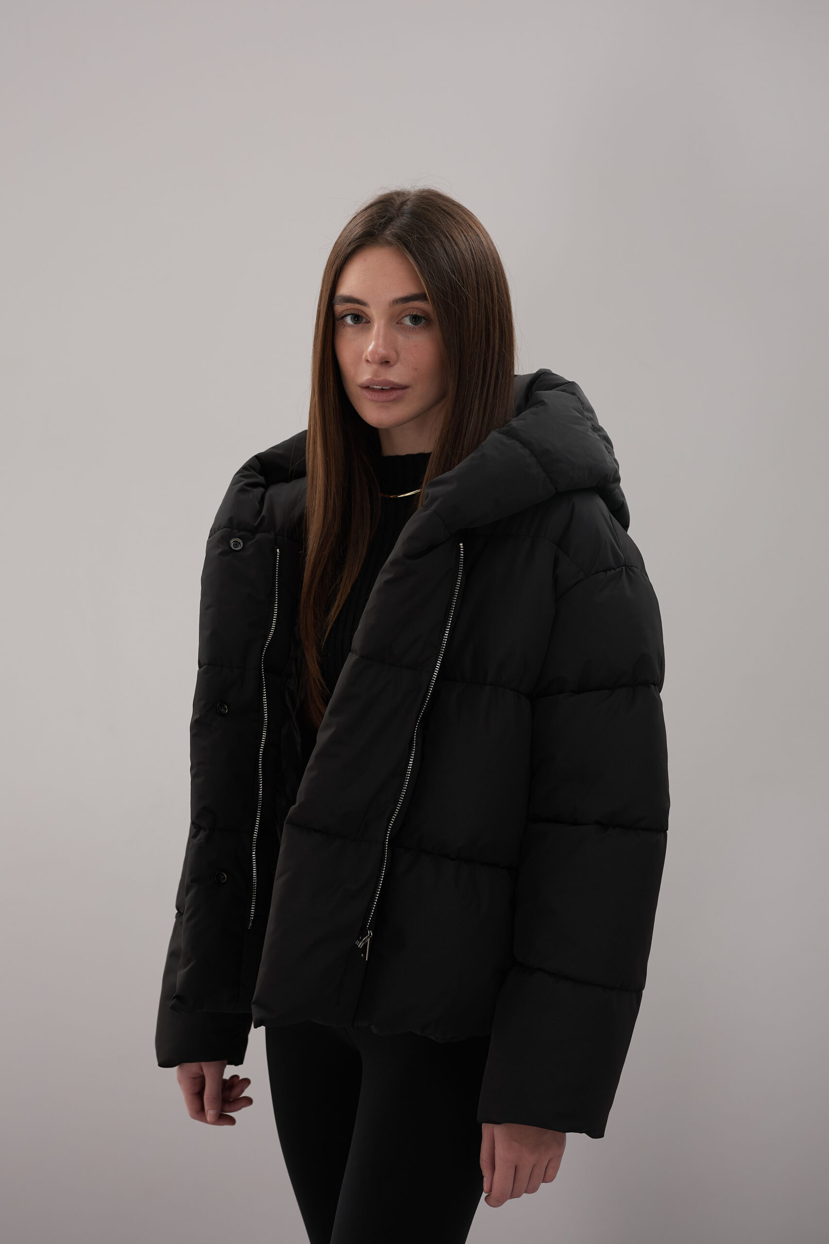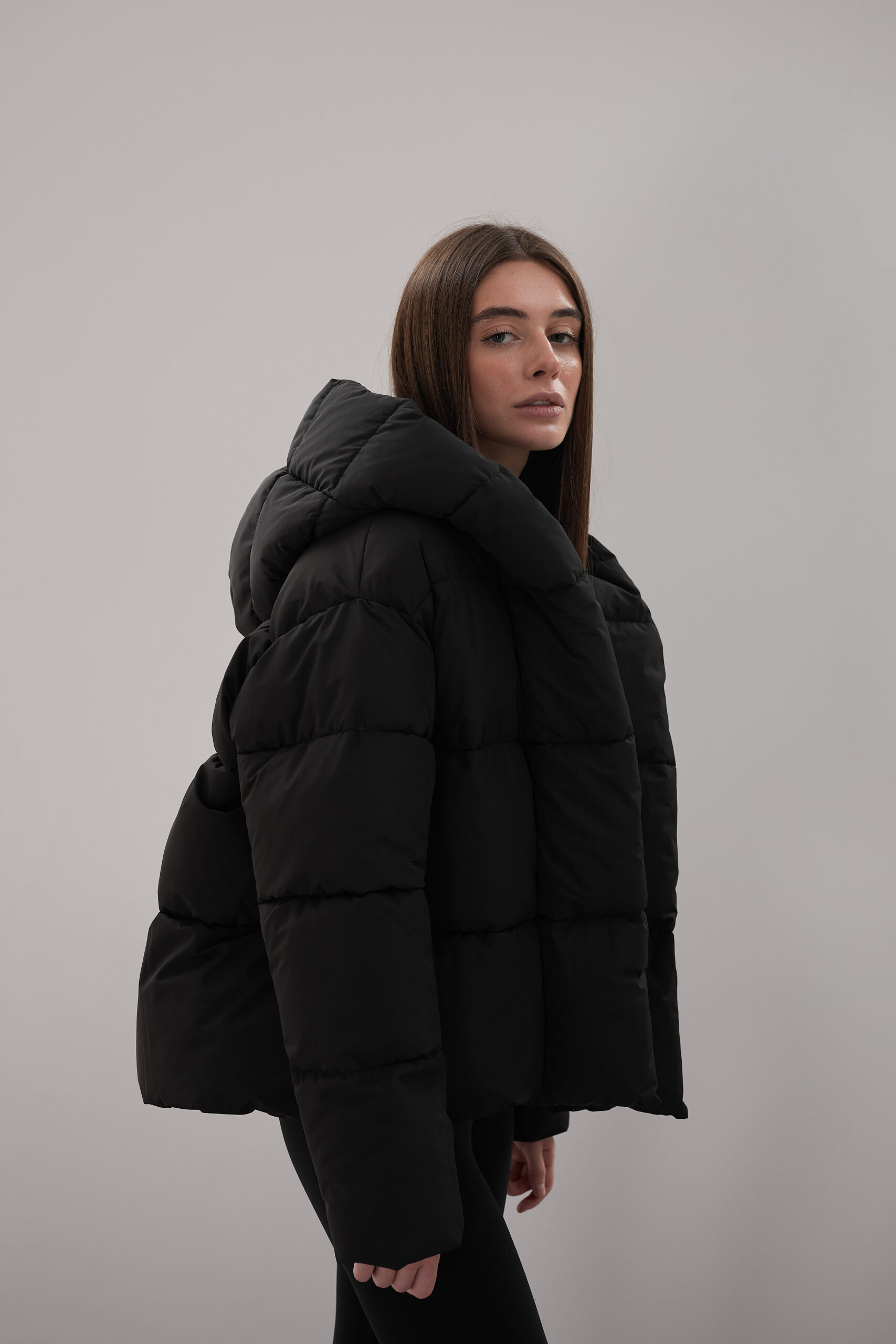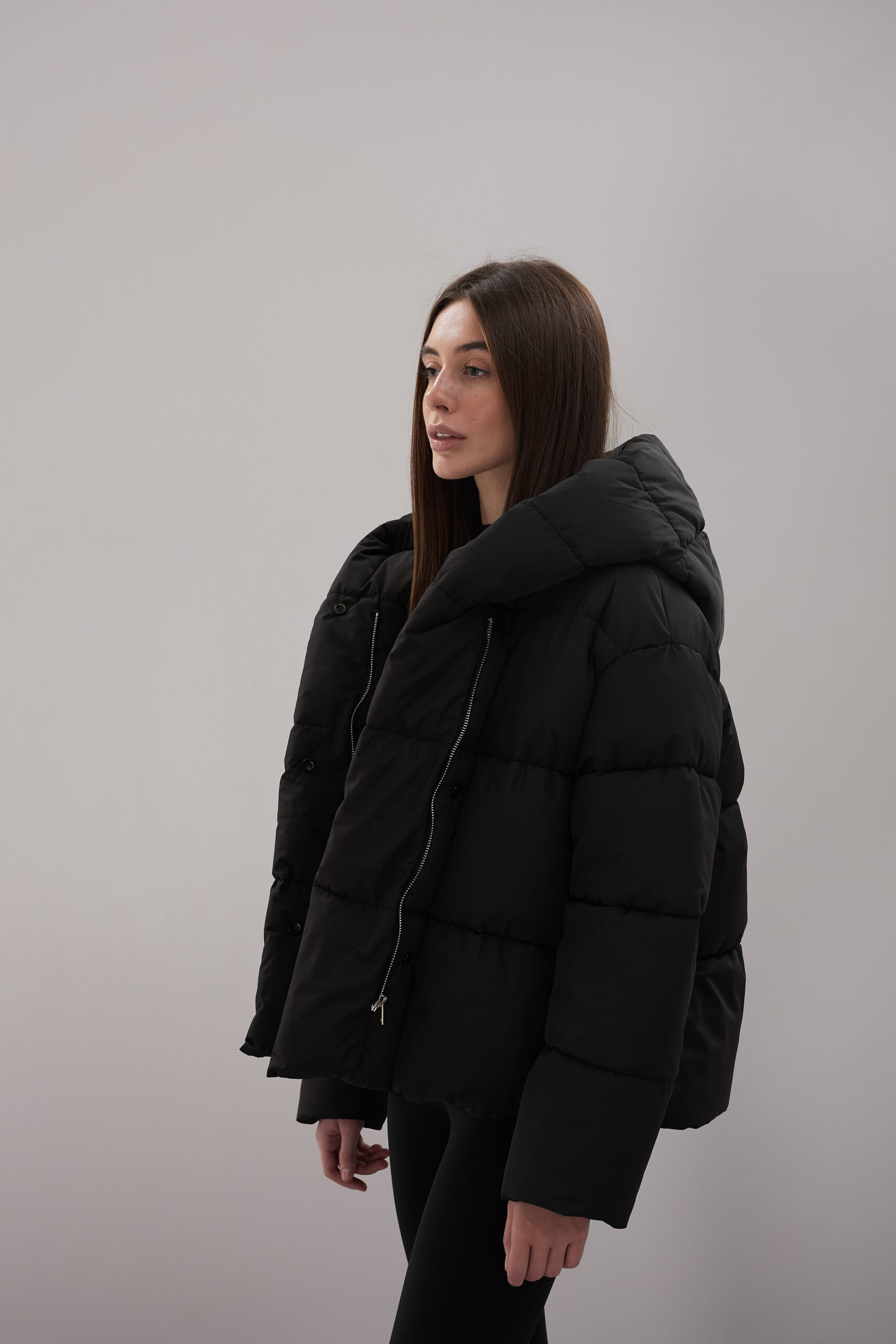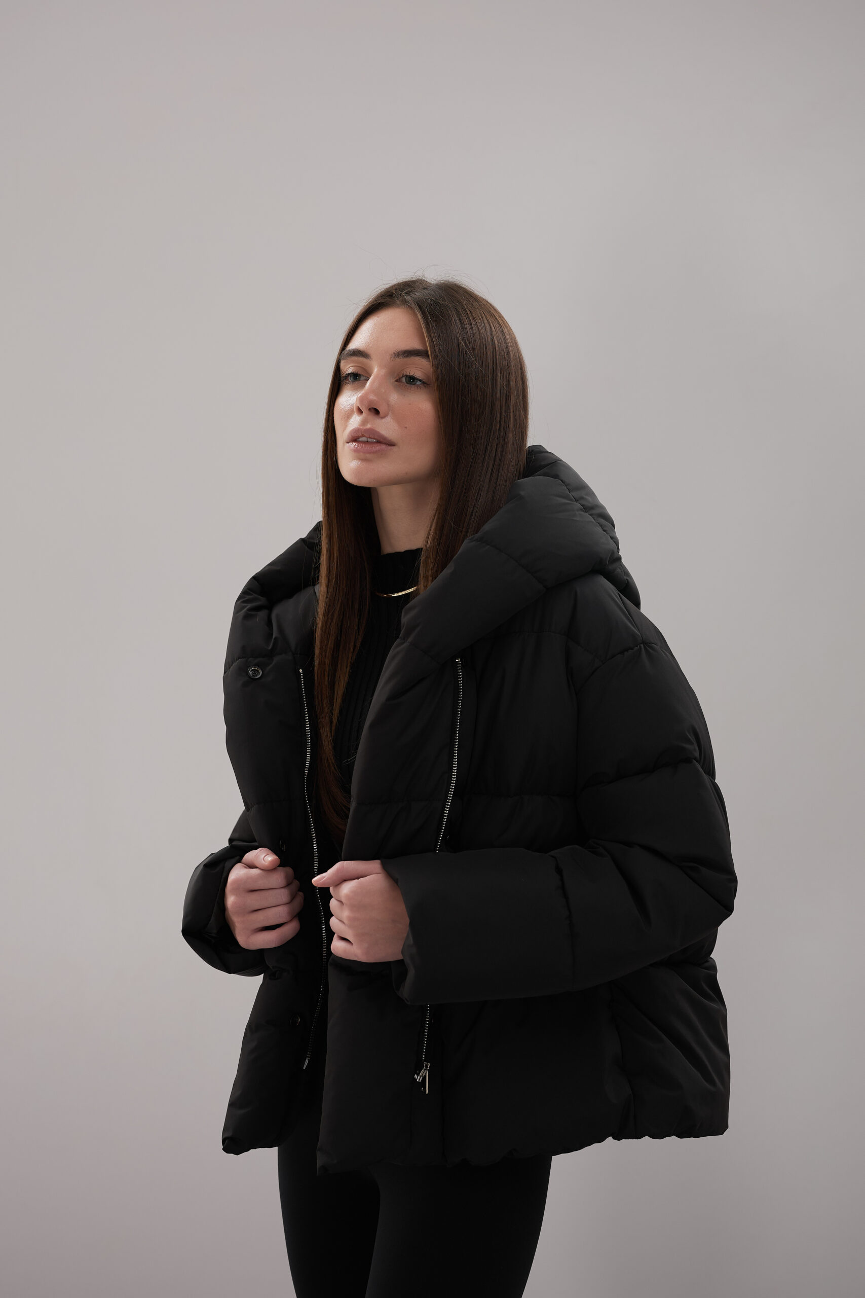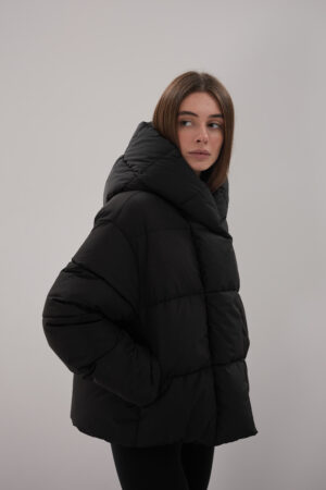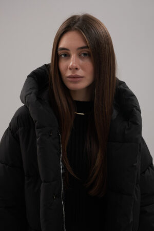 Модель пуховика розроблена з урахуванням сучасних трендів. Злегка вільний крій забезпечує комфорт під час руху, дозволяючи носити додаткові шари одягу. Подовжена спинка додає стилю і захищає від холоду, а об’ємний капюшон створює ефект обгортання — актуальна деталь, що робить цей пуховик надзвичайно модним. Відсутність манжетів додає легкості та свободи руху.