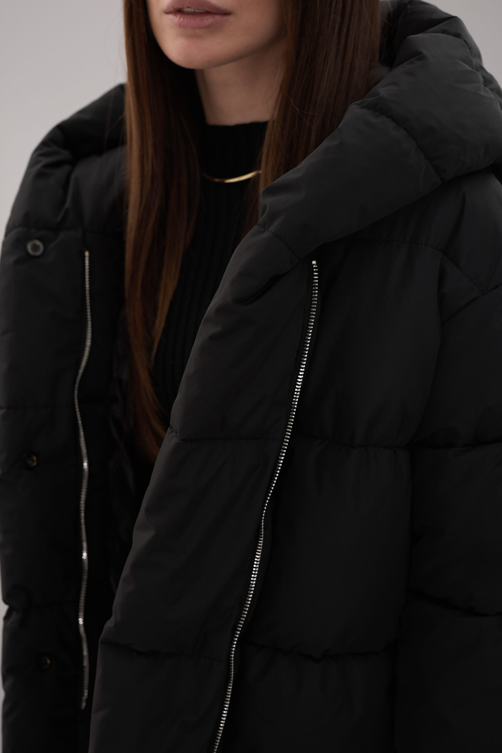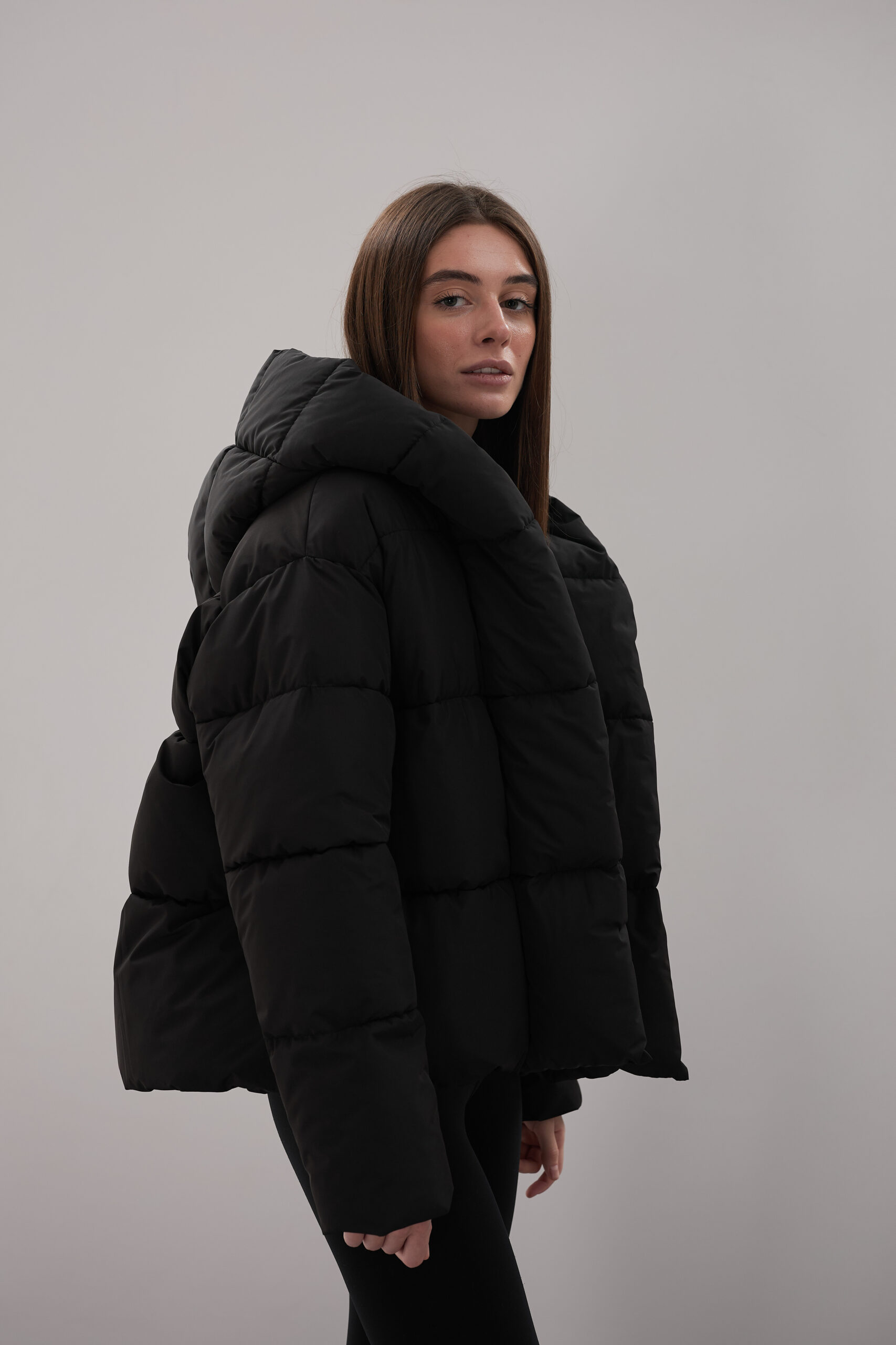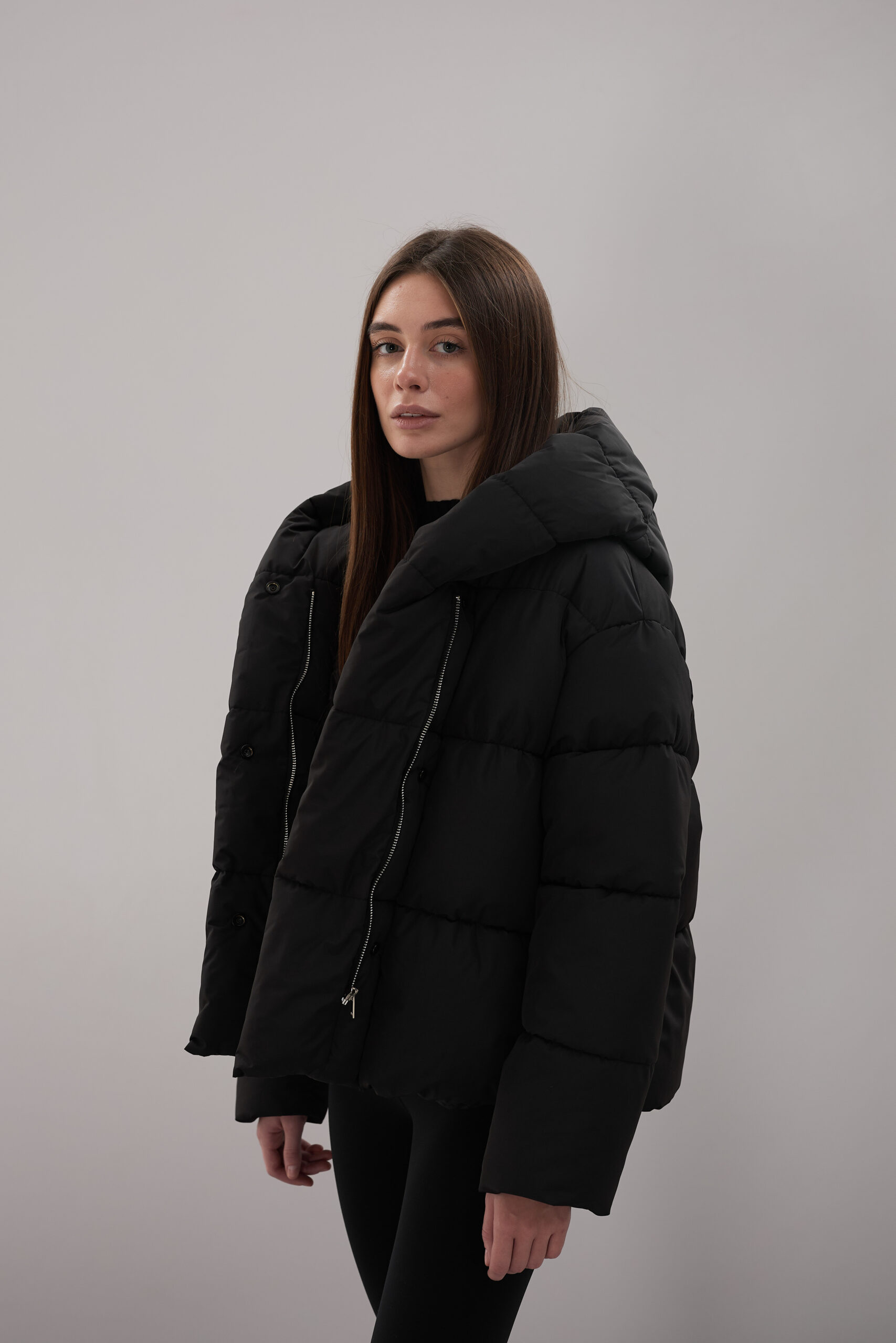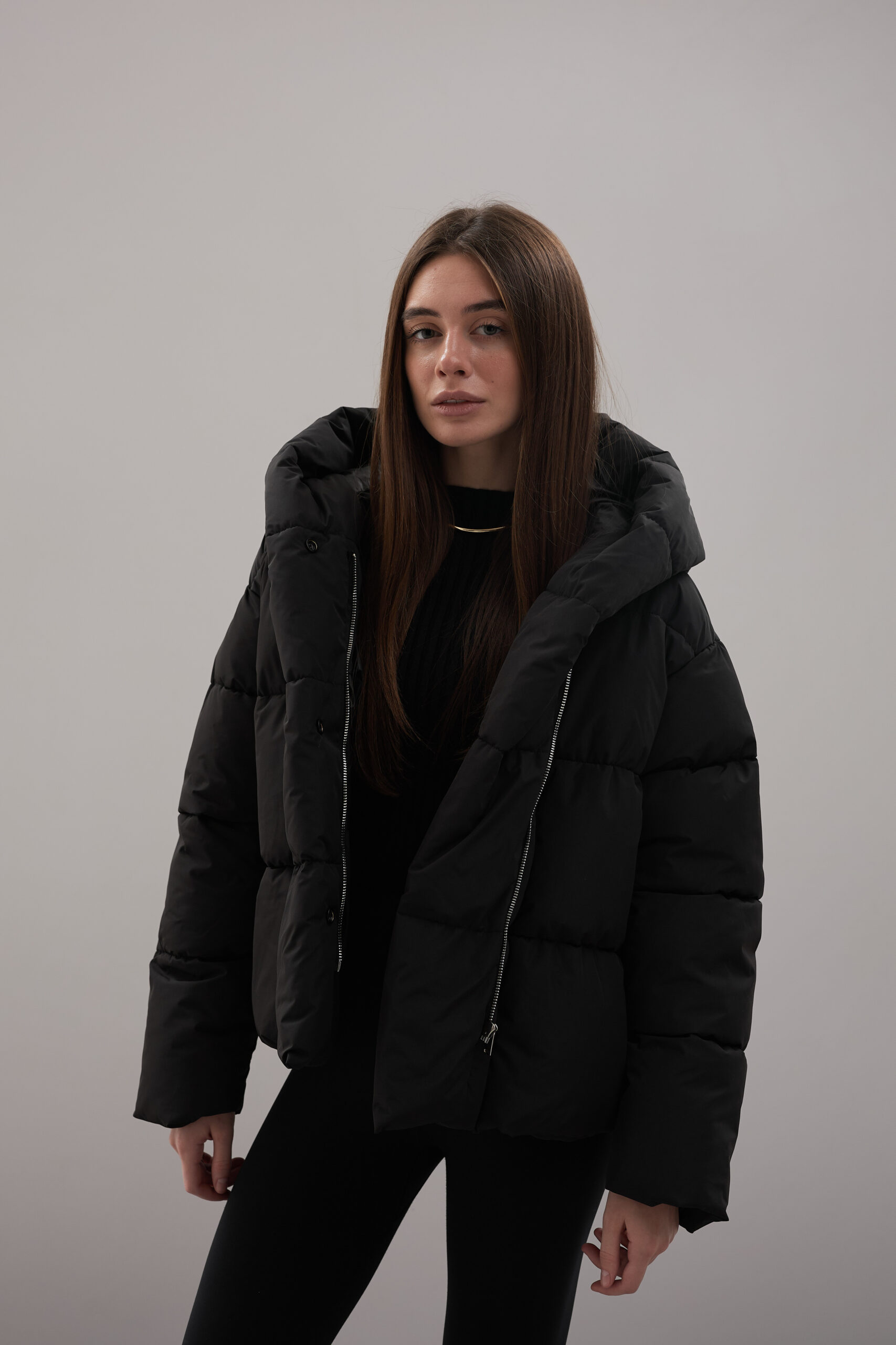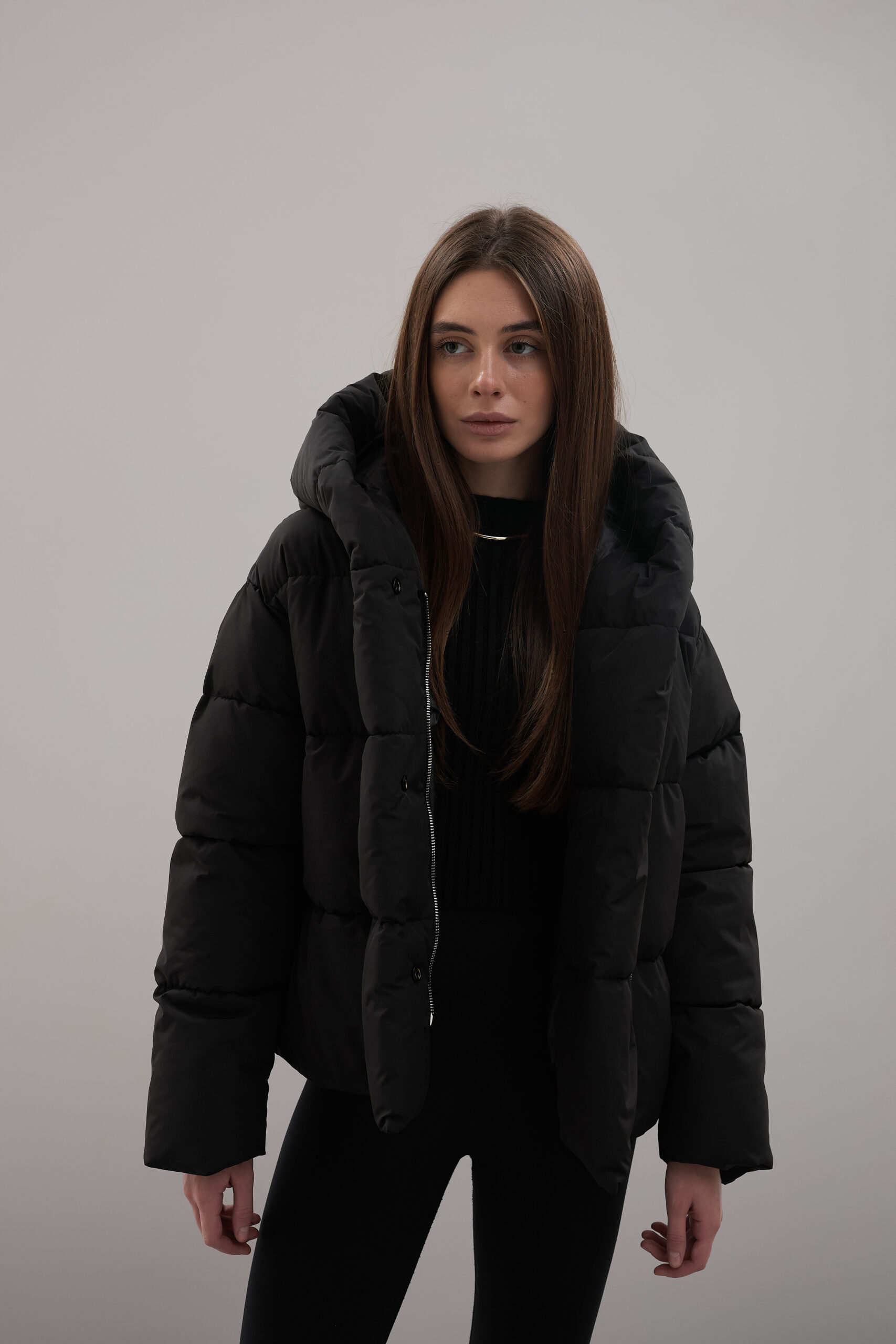 Модель пуховика розроблена з урахуванням сучасних трендів. Злегка вільний крій забезпечує комфорт під час руху, дозволяючи носити додаткові шари одягу. Подовжена спинка додає стилю і захищає від холоду, а об’ємний капюшон створює ефект обгортання — актуальна деталь, що робить цей пуховик надзвичайно модним. Відсутність манжетів додає легкості та свободи руху.