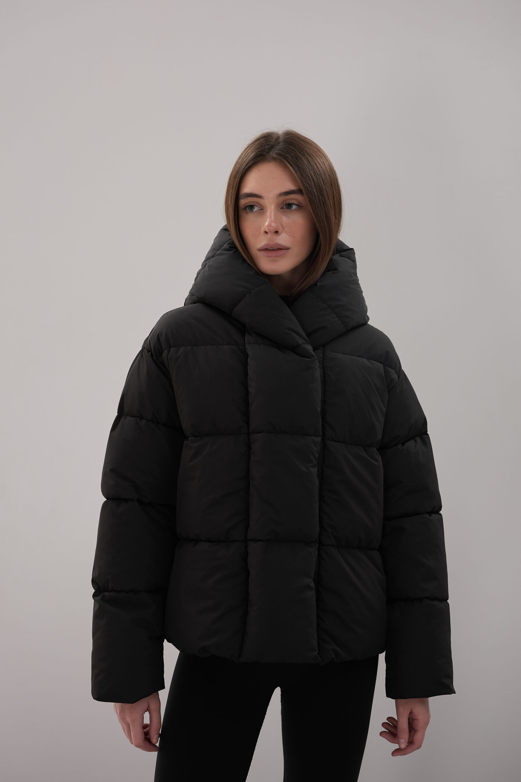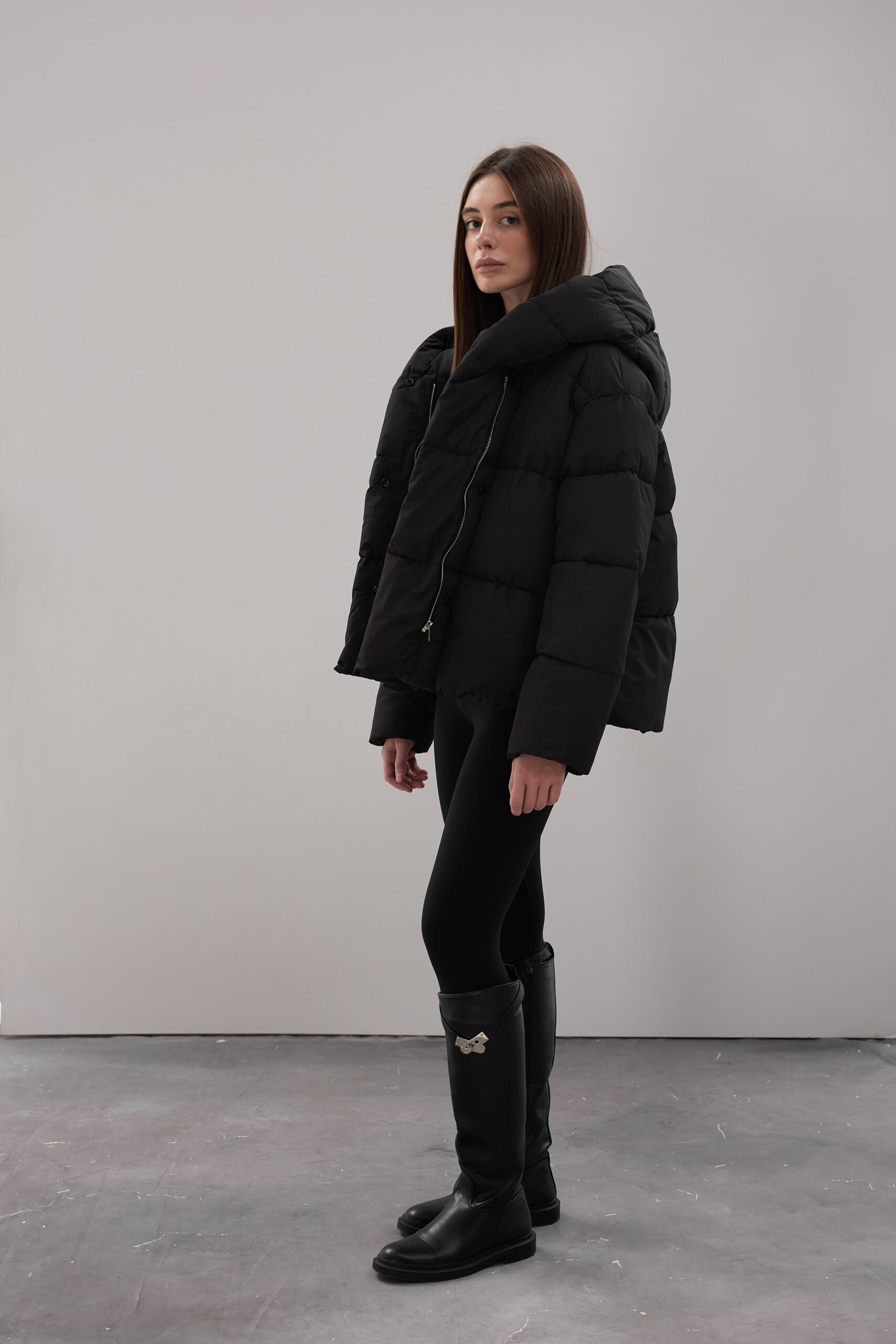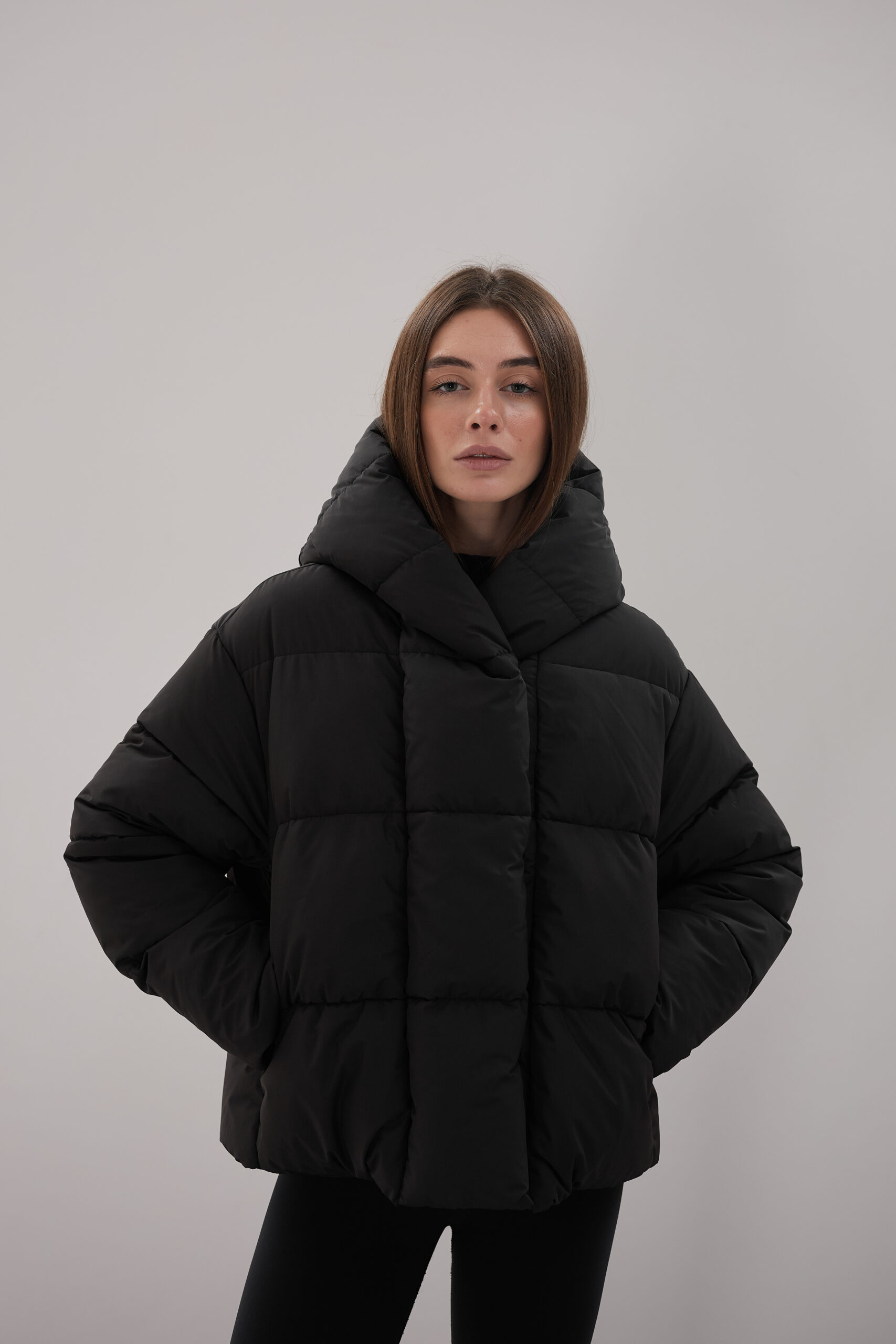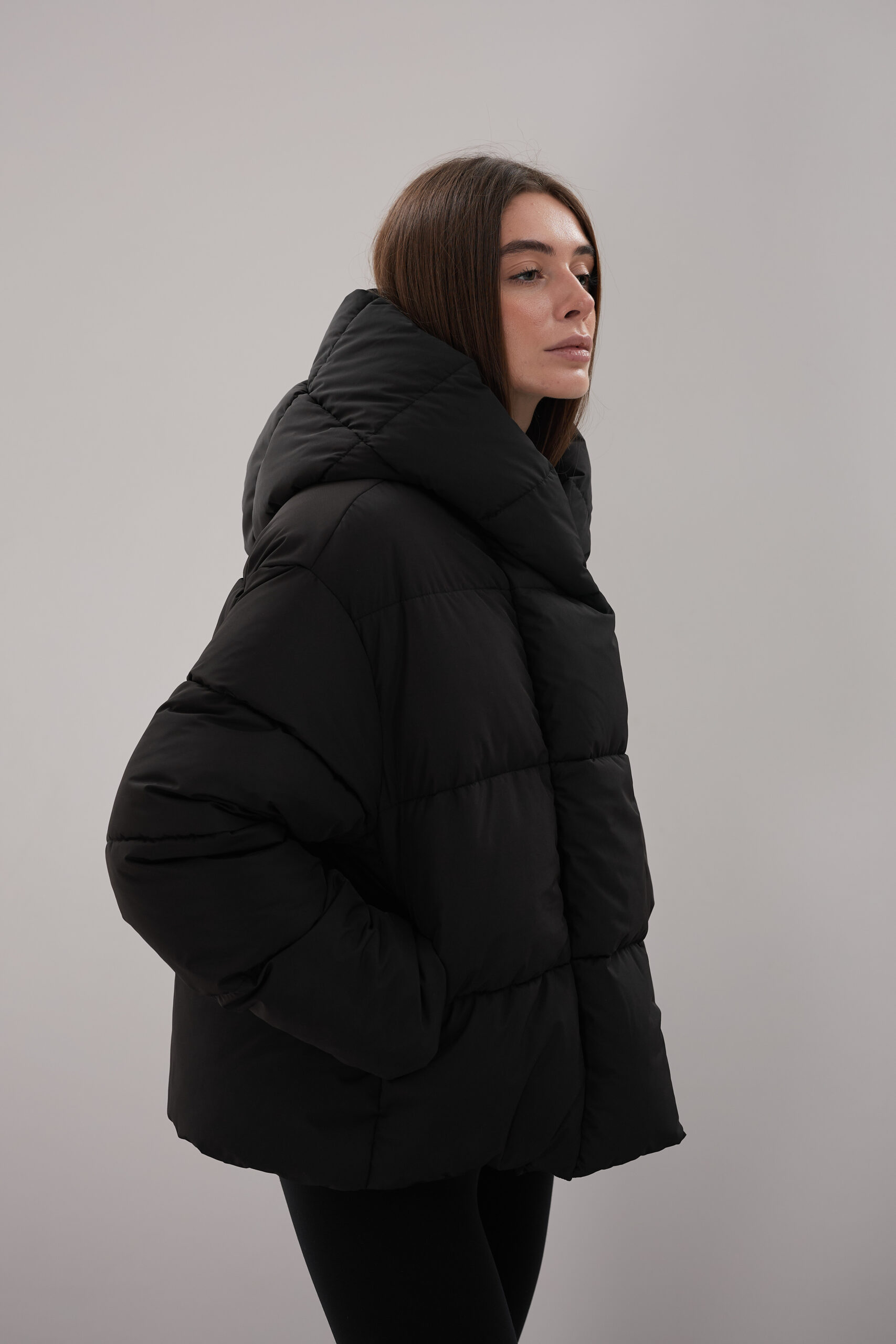 Модель пуховика розроблена з урахуванням сучасних трендів. Злегка вільний крій забезпечує комфорт під час руху, дозволяючи носити додаткові шари одягу. Подовжена спинка додає стилю і захищає від холоду, а об’ємний капюшон створює ефект обгортання — актуальна деталь, що робить цей пуховик надзвичайно модним. Відсутність манжетів додає легкості та свободи руху.