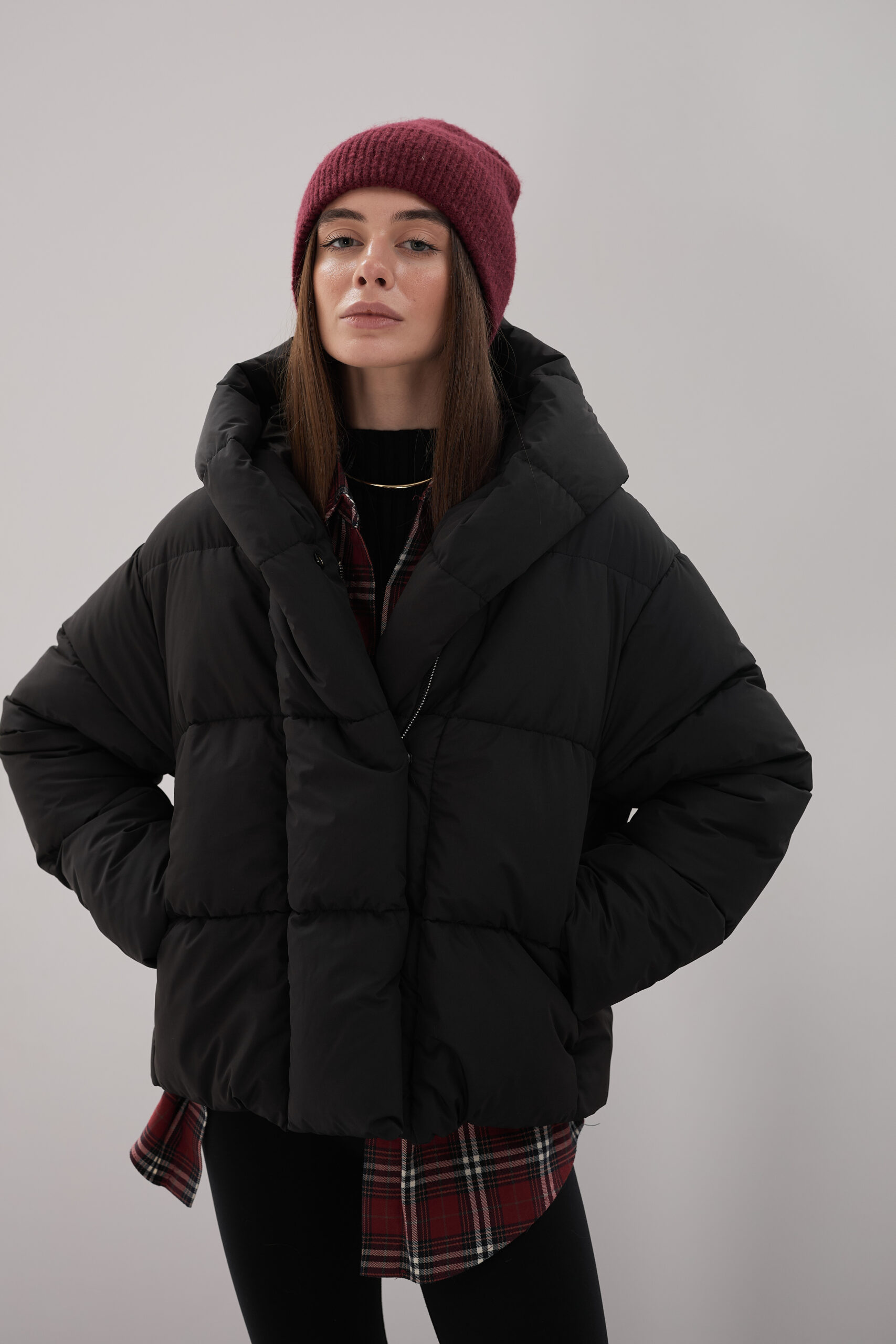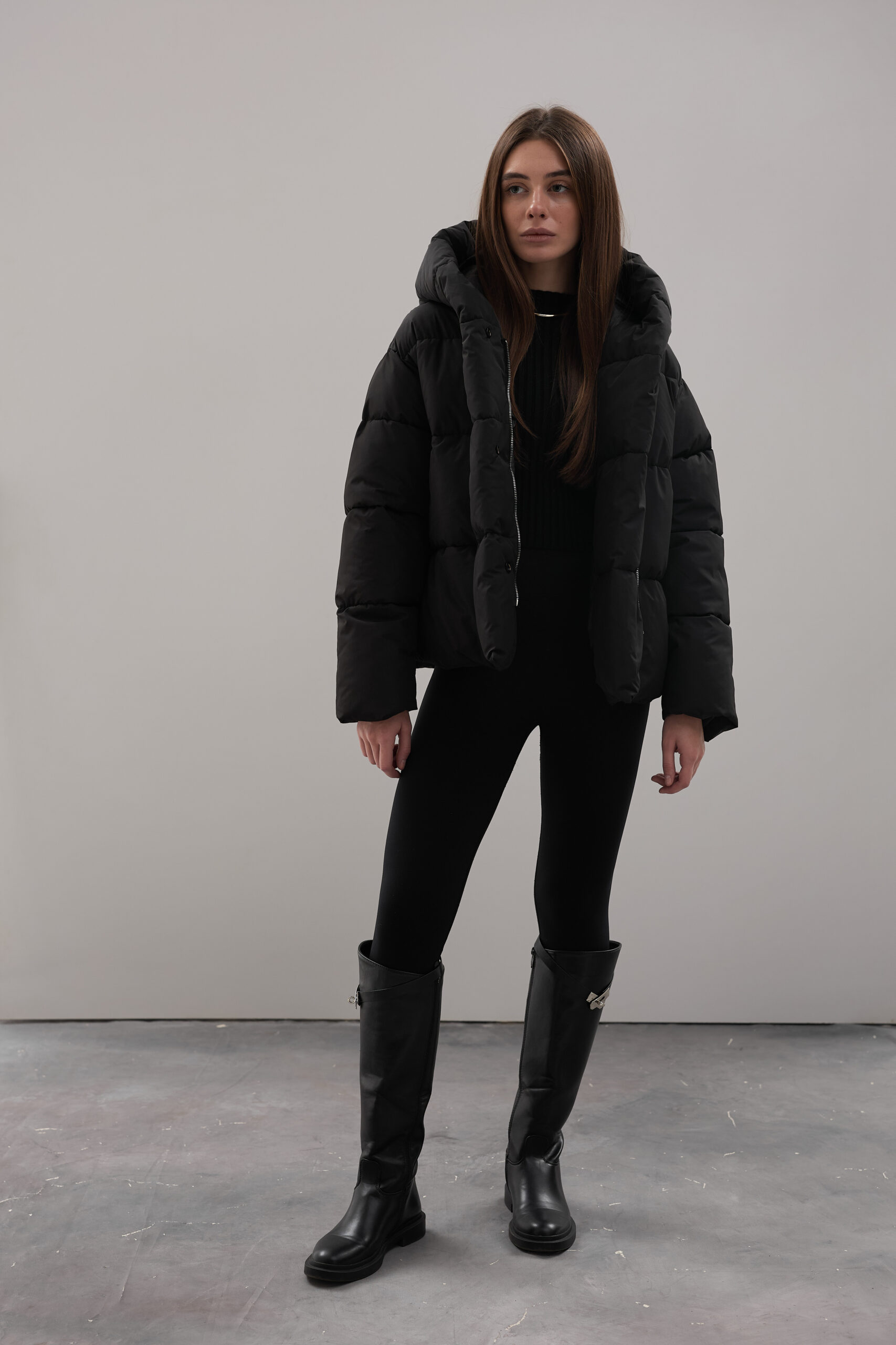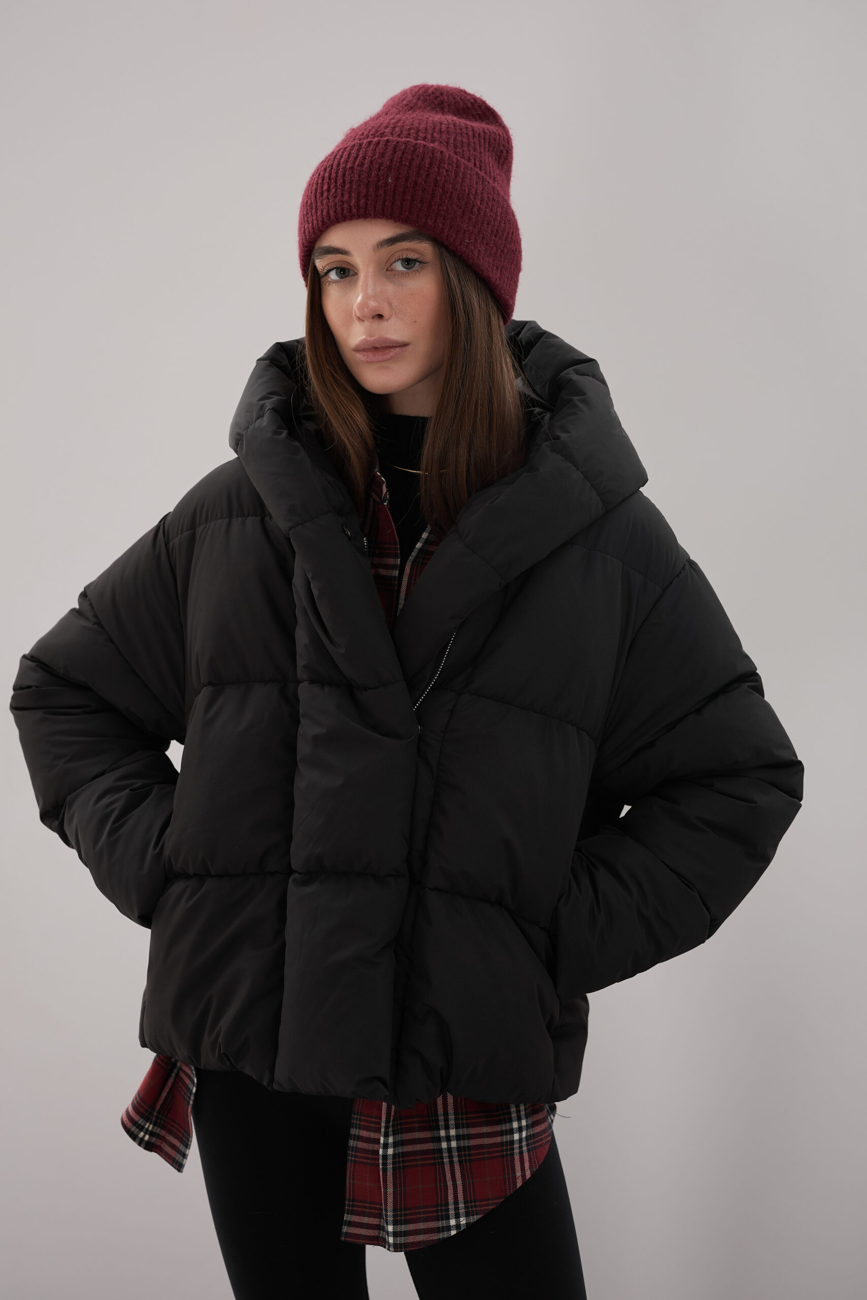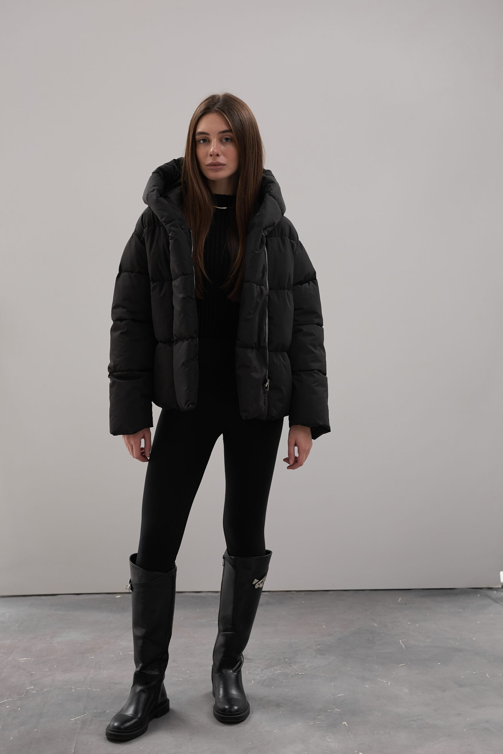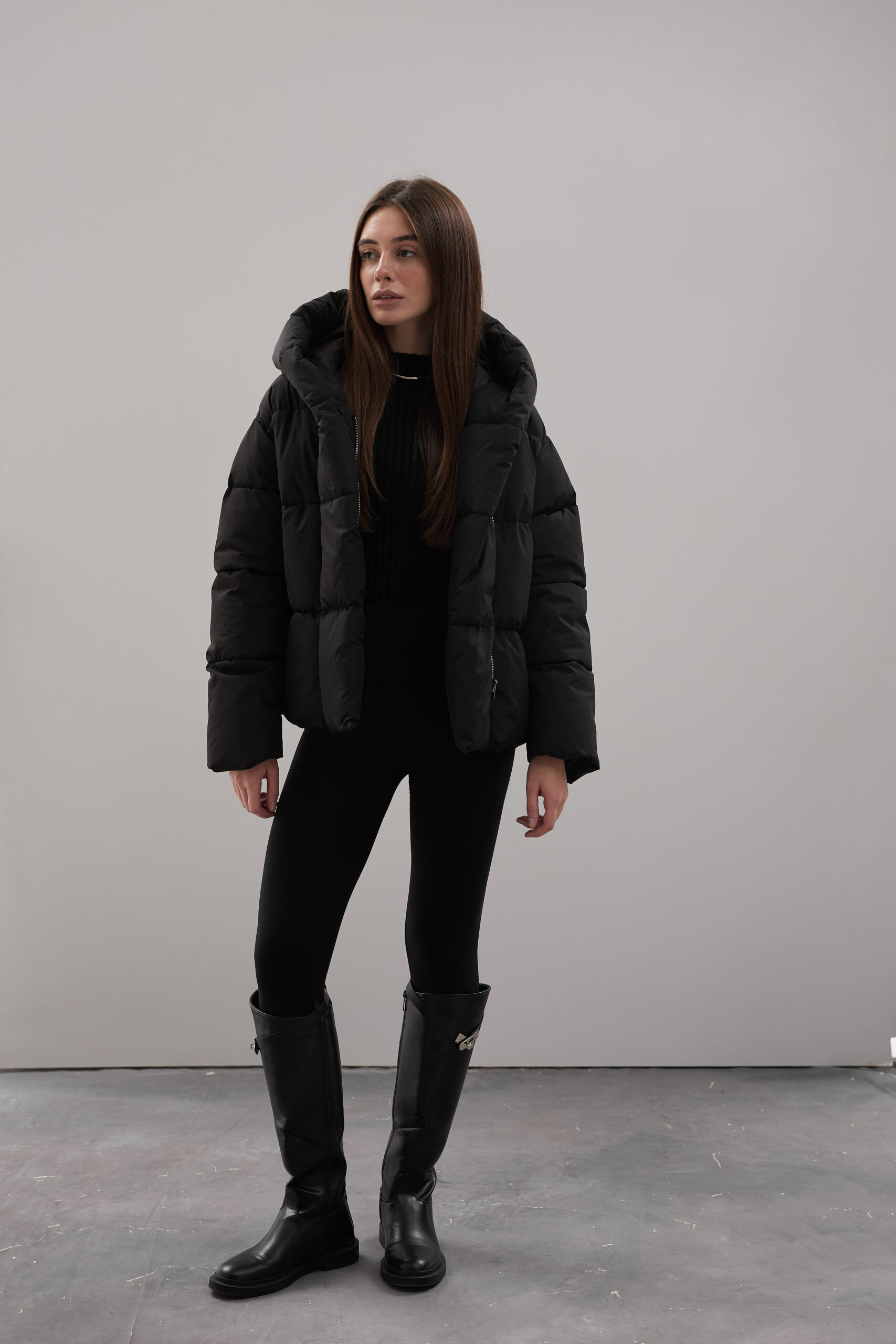 Модель пуховика розроблена з урахуванням сучасних трендів. Злегка вільний крій забезпечує комфорт під час руху, дозволяючи носити додаткові шари одягу. Подовжена спинка додає стилю і захищає від холоду, а об’ємний капюшон створює ефект обгортання — актуальна деталь, що робить цей пуховик надзвичайно модним. Відсутність манжетів додає легкості та свободи руху.