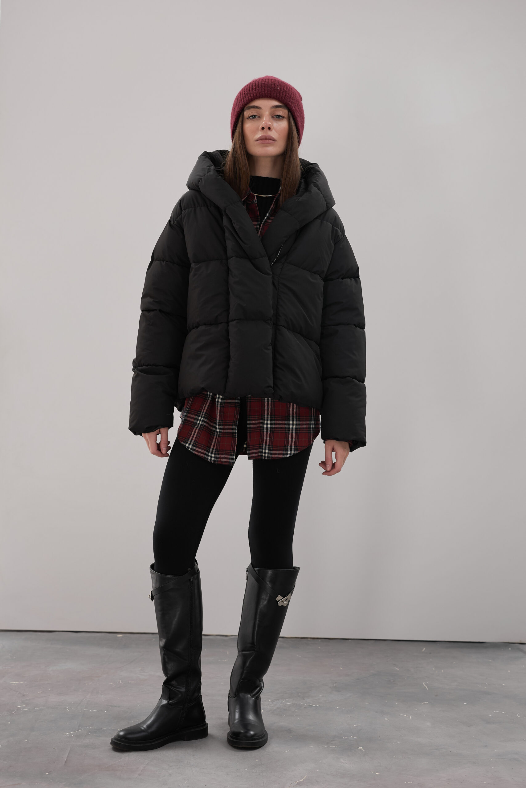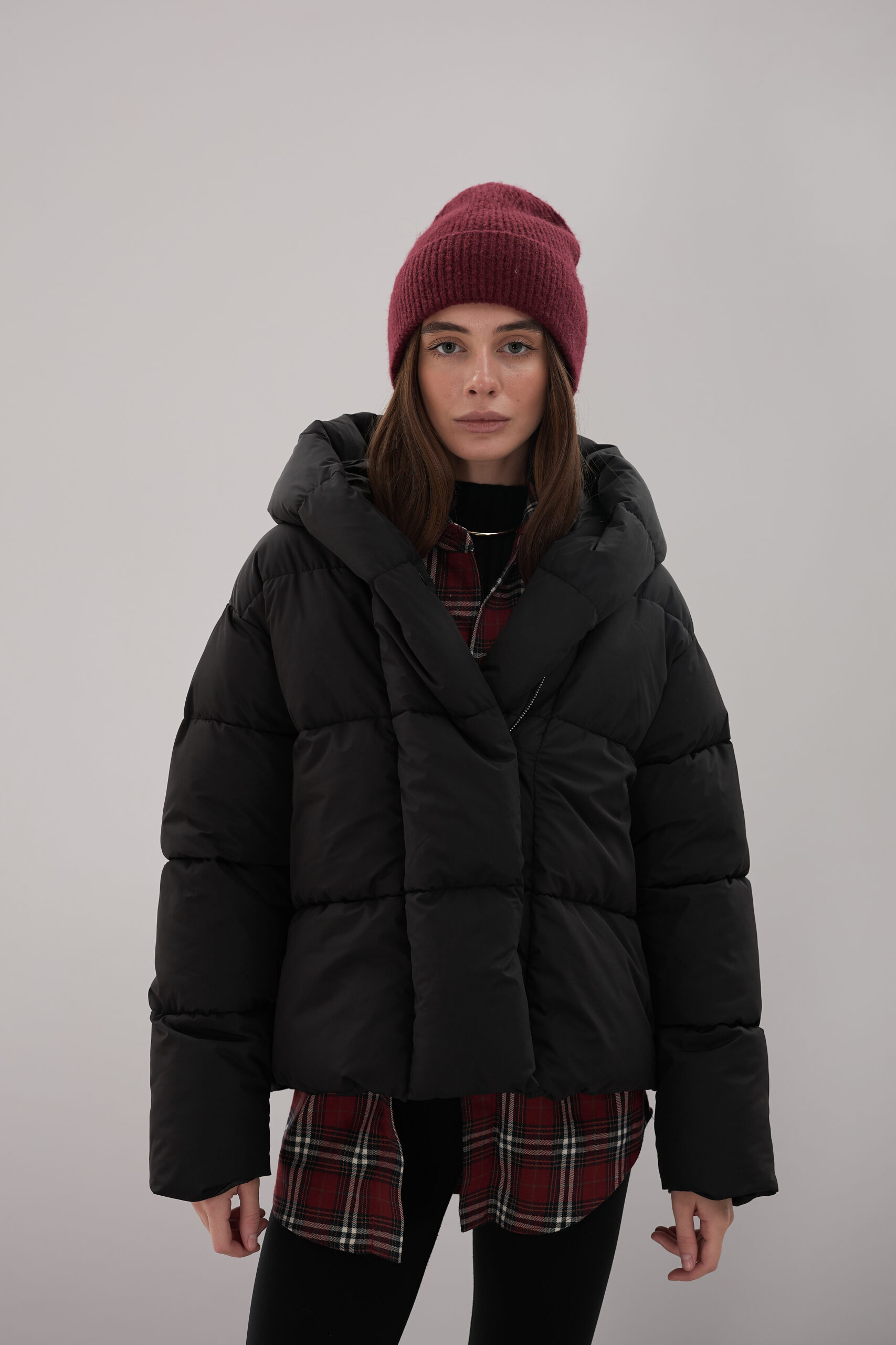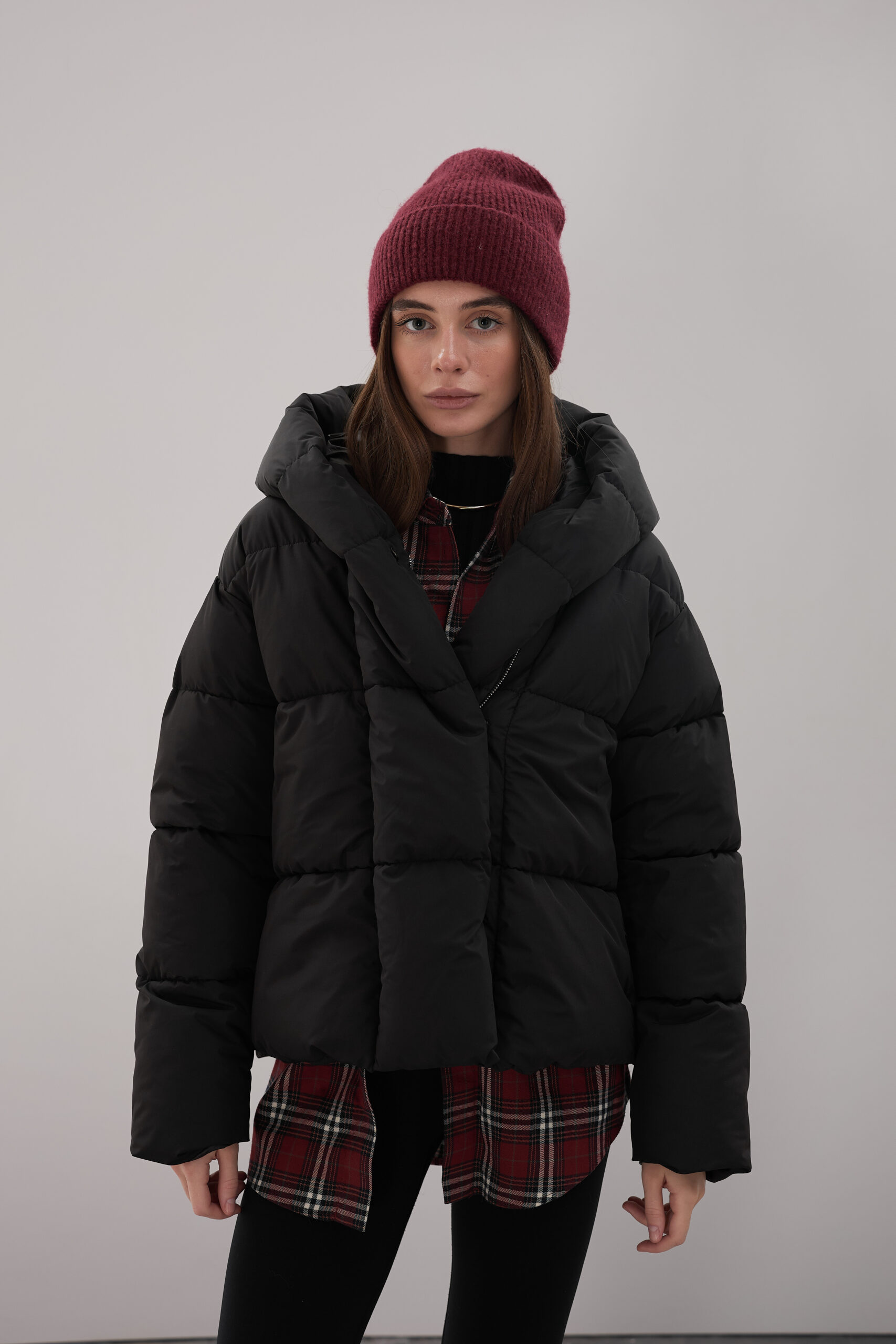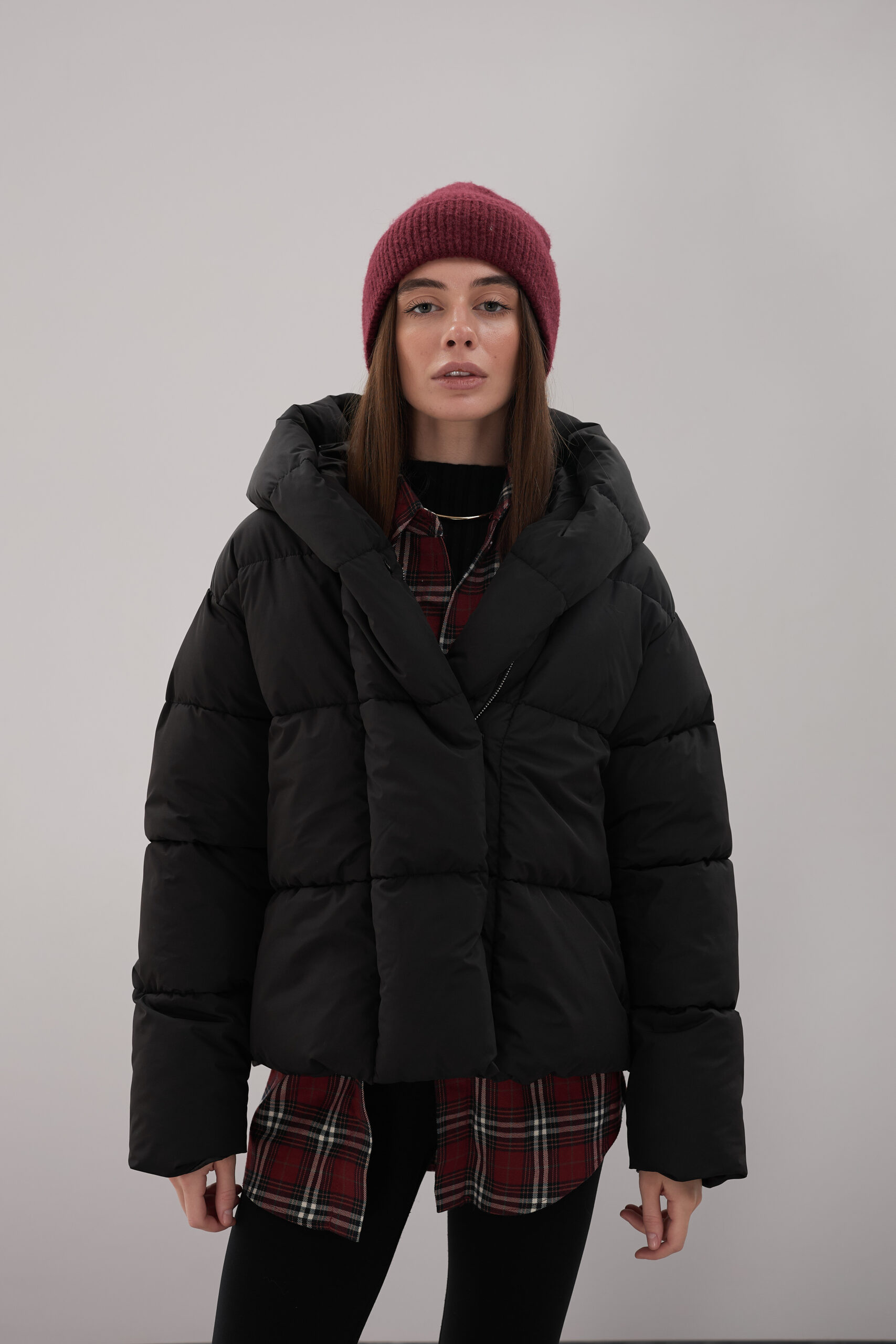 Модель пуховика розроблена з урахуванням сучасних трендів. Злегка вільний крій забезпечує комфорт під час руху, дозволяючи носити додаткові шари одягу. Подовжена спинка додає стилю і захищає від холоду, а об’ємний капюшон створює ефект обгортання — актуальна деталь, що робить цей пуховик надзвичайно модним. Відсутність манжетів додає легкості та свободи руху.