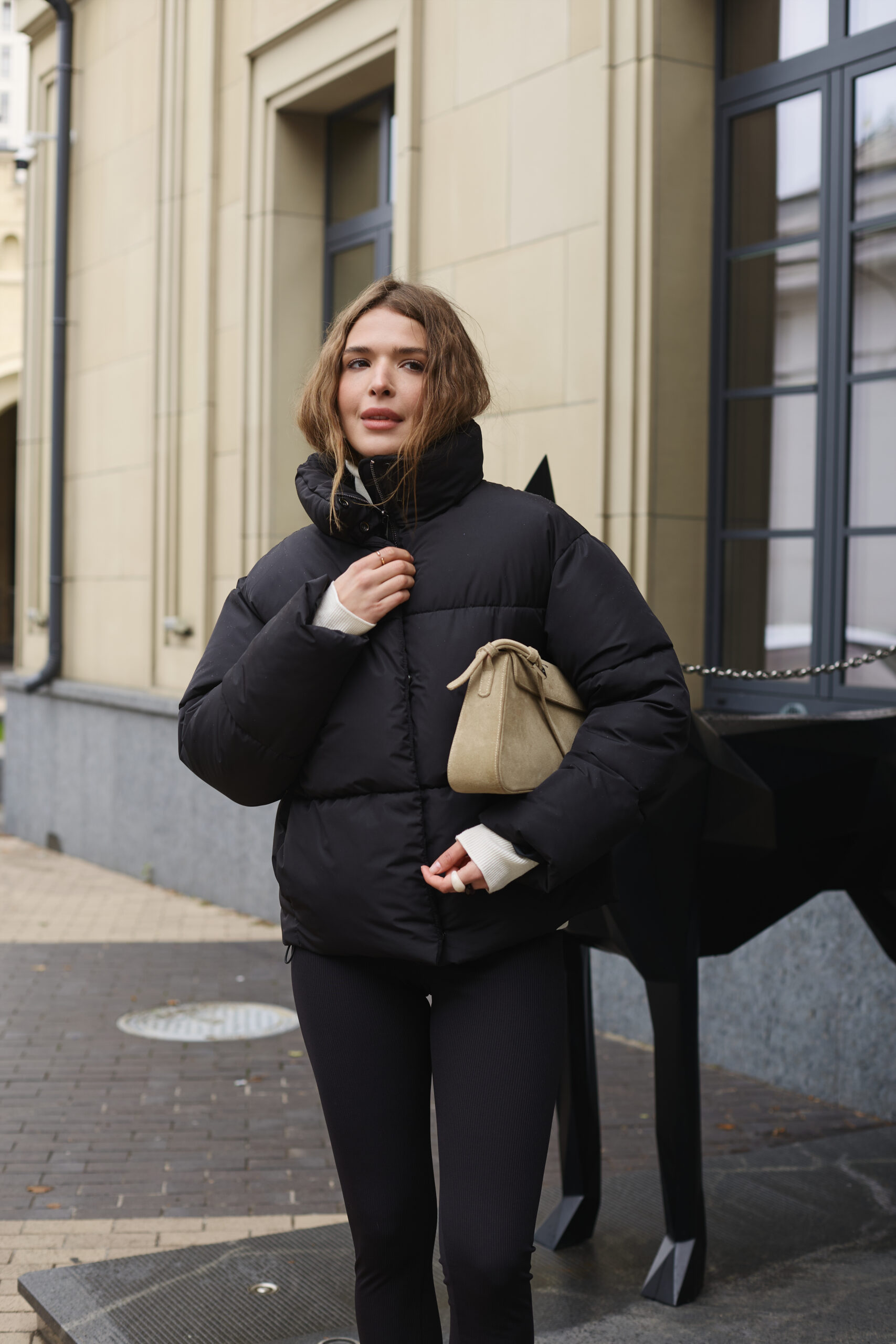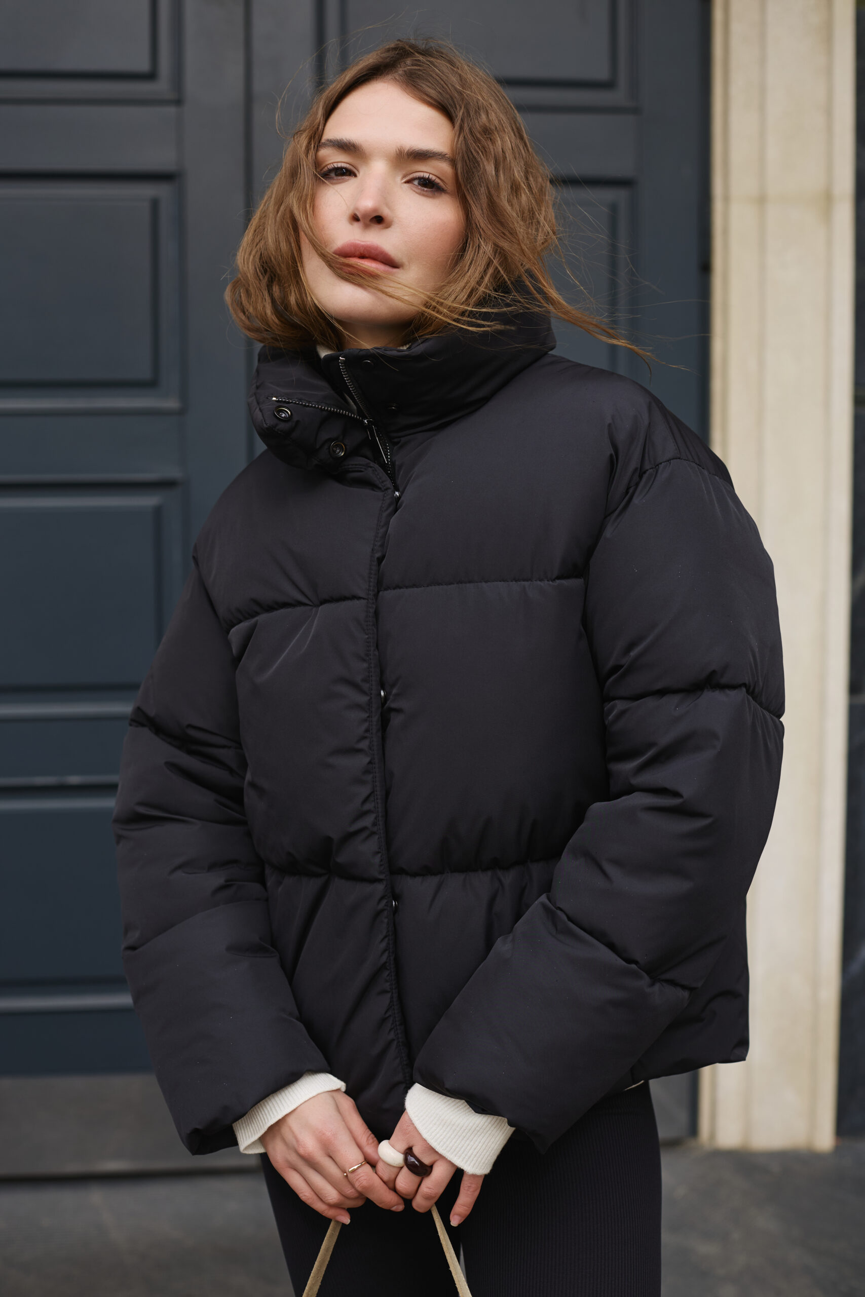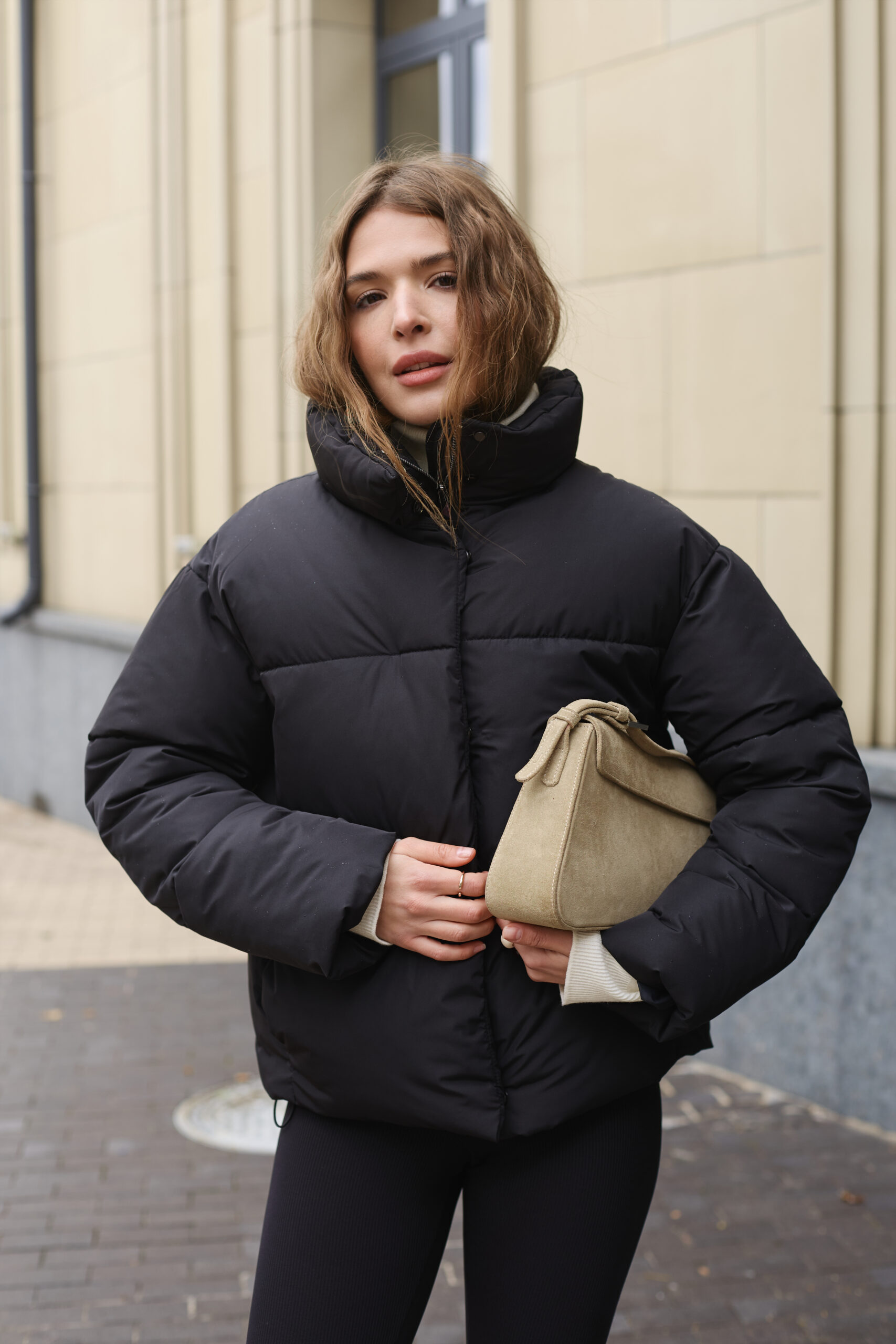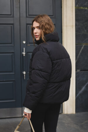 Жіночий зимовий пуховик без капюшона в чорному кольорі — універсальність, стиль і тепло
