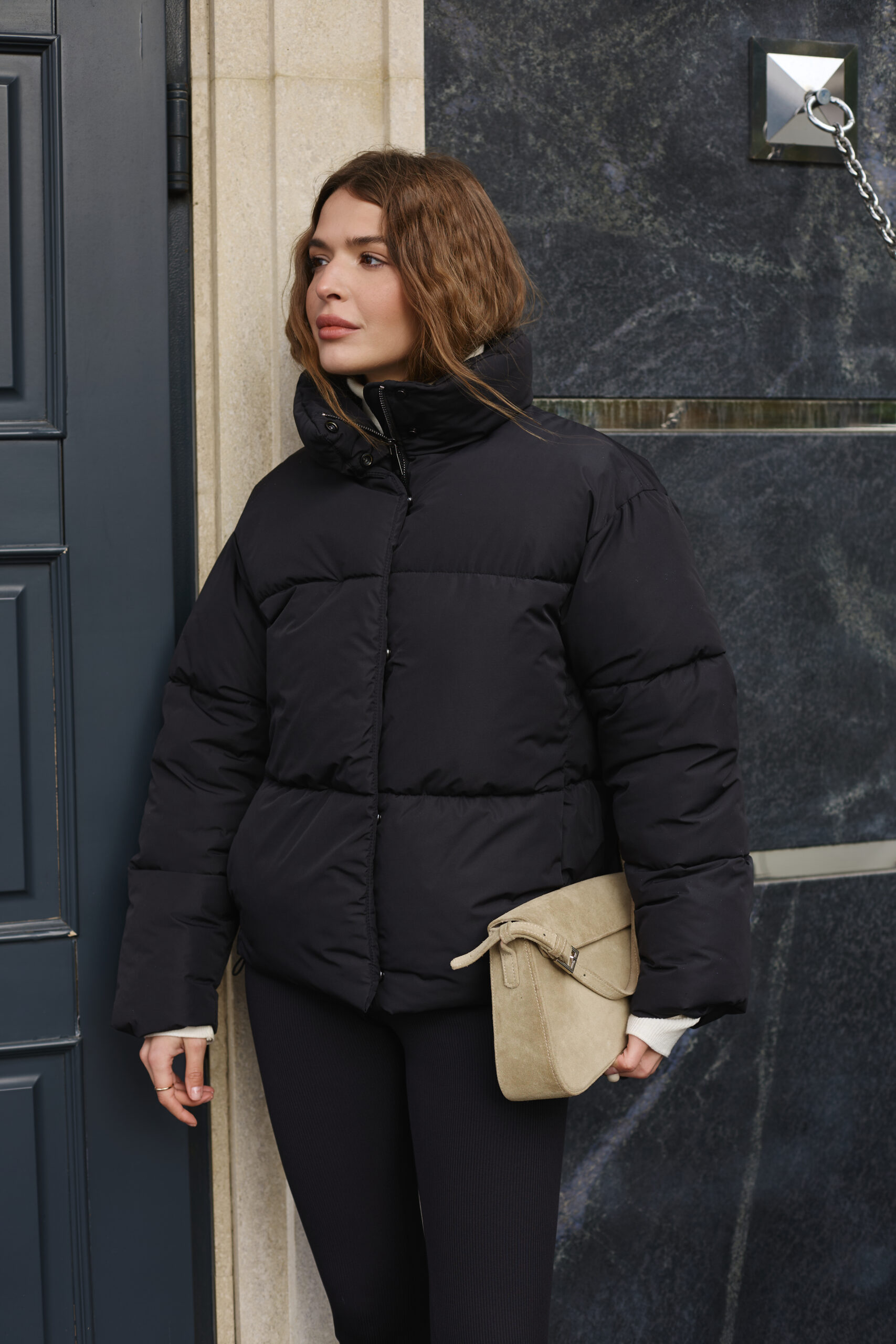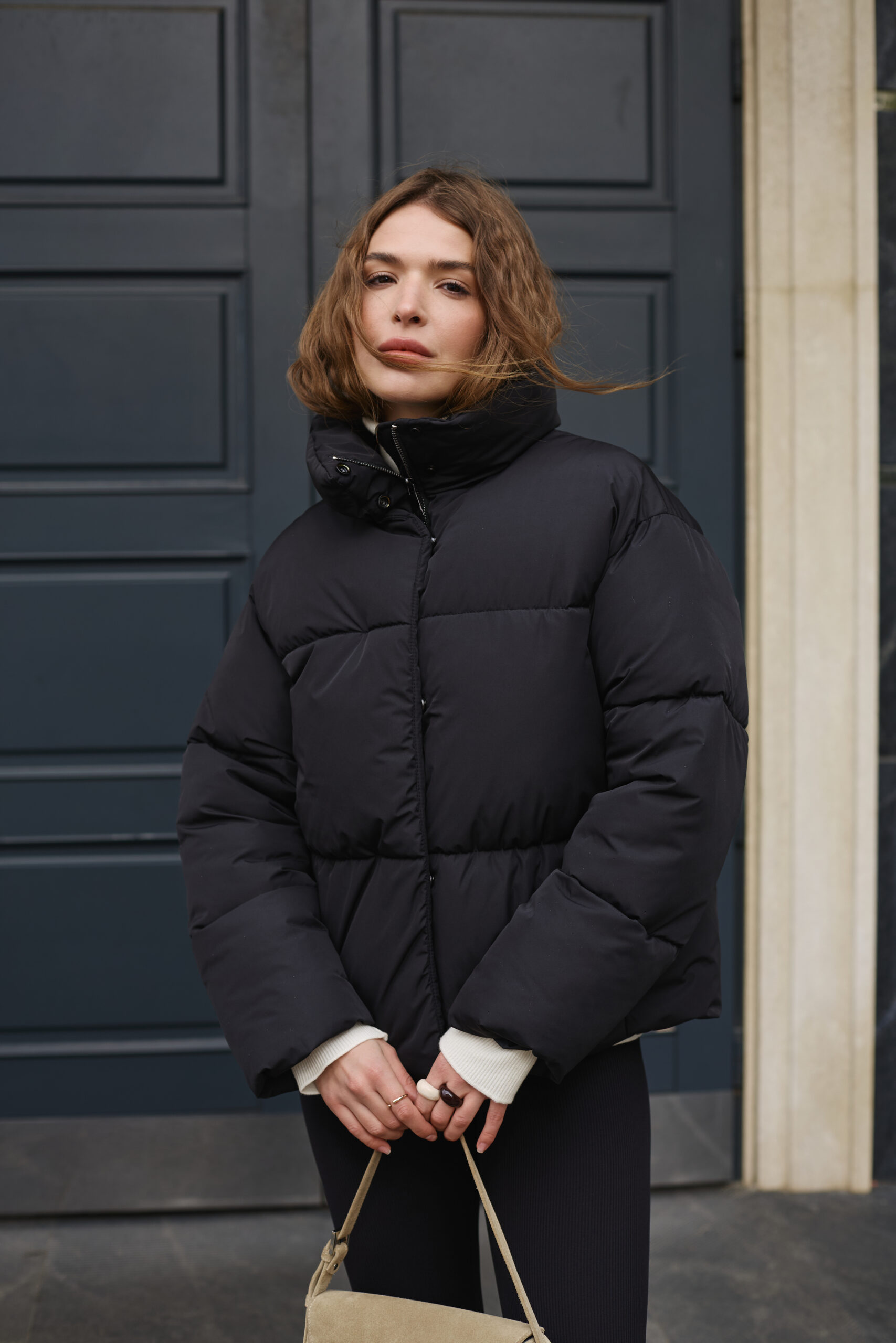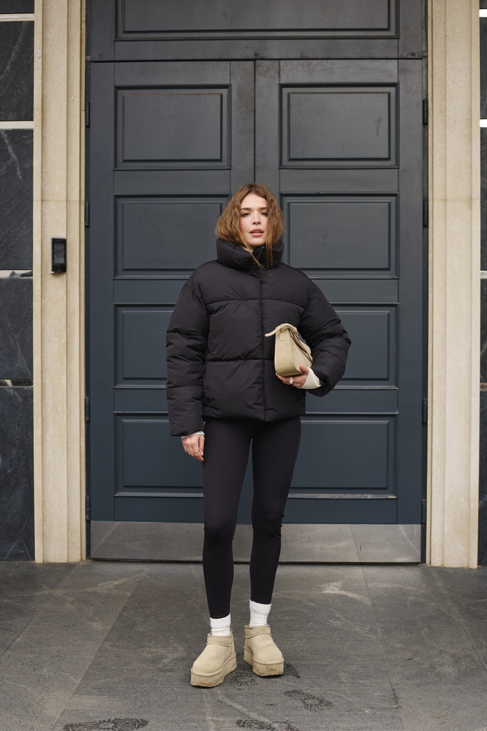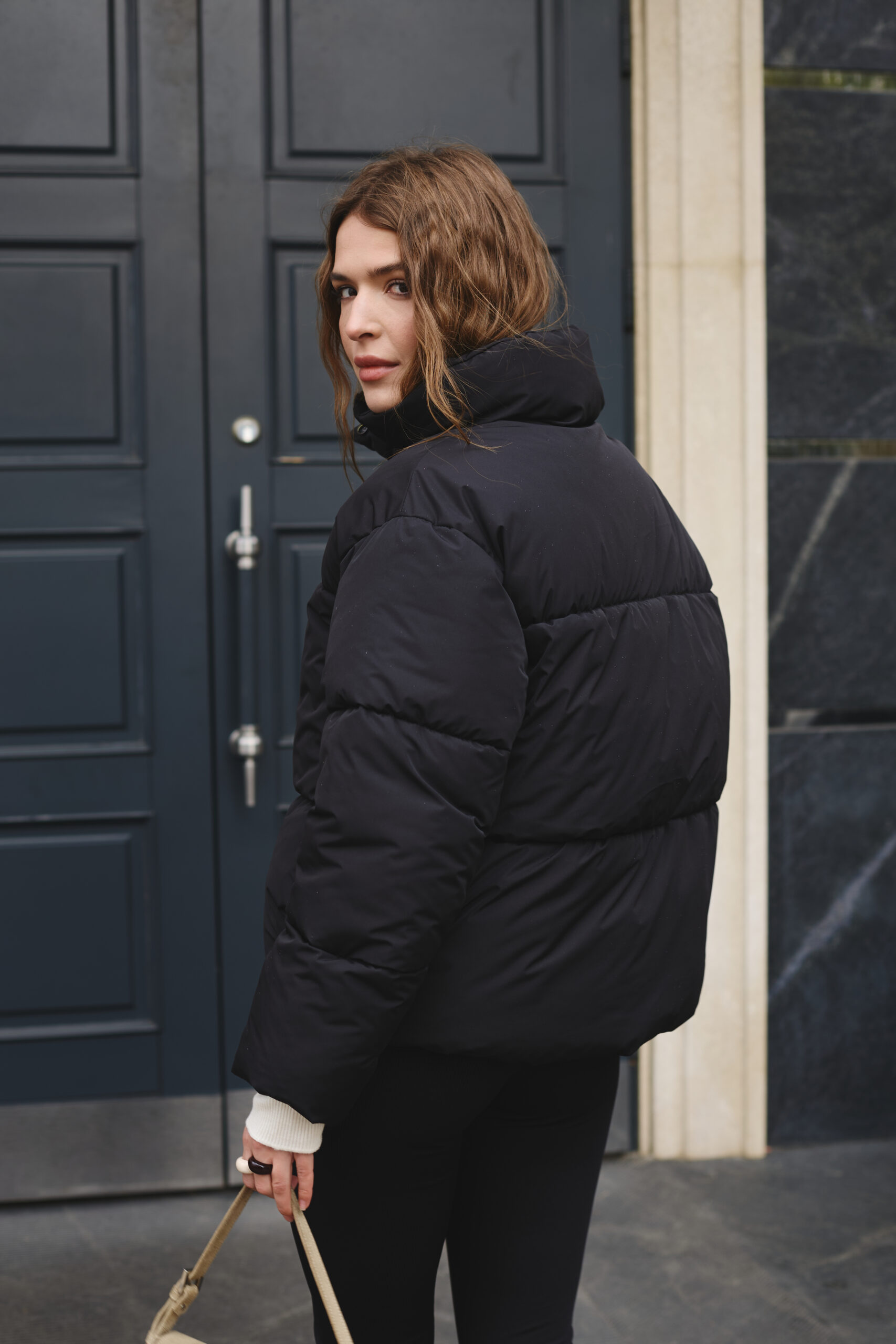 Жіночий зимовий пуховик без капюшона в чорному кольорі — універсальність, стиль і тепло