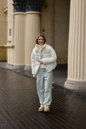 Жіночий пуховик молочного кольору — це практичне й елегантне рішення для зими, яке подарує вам тепло, комфорт і бездоганний стиль.