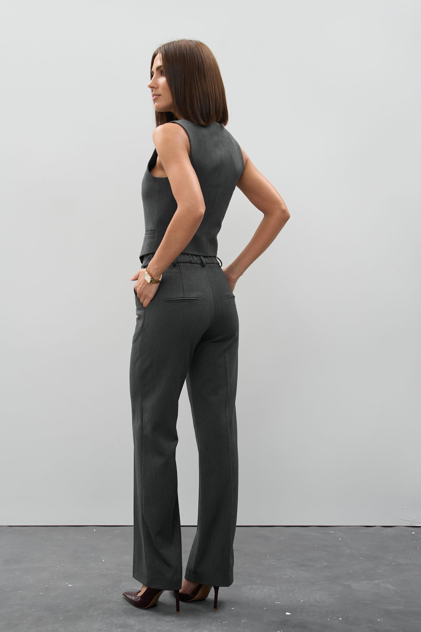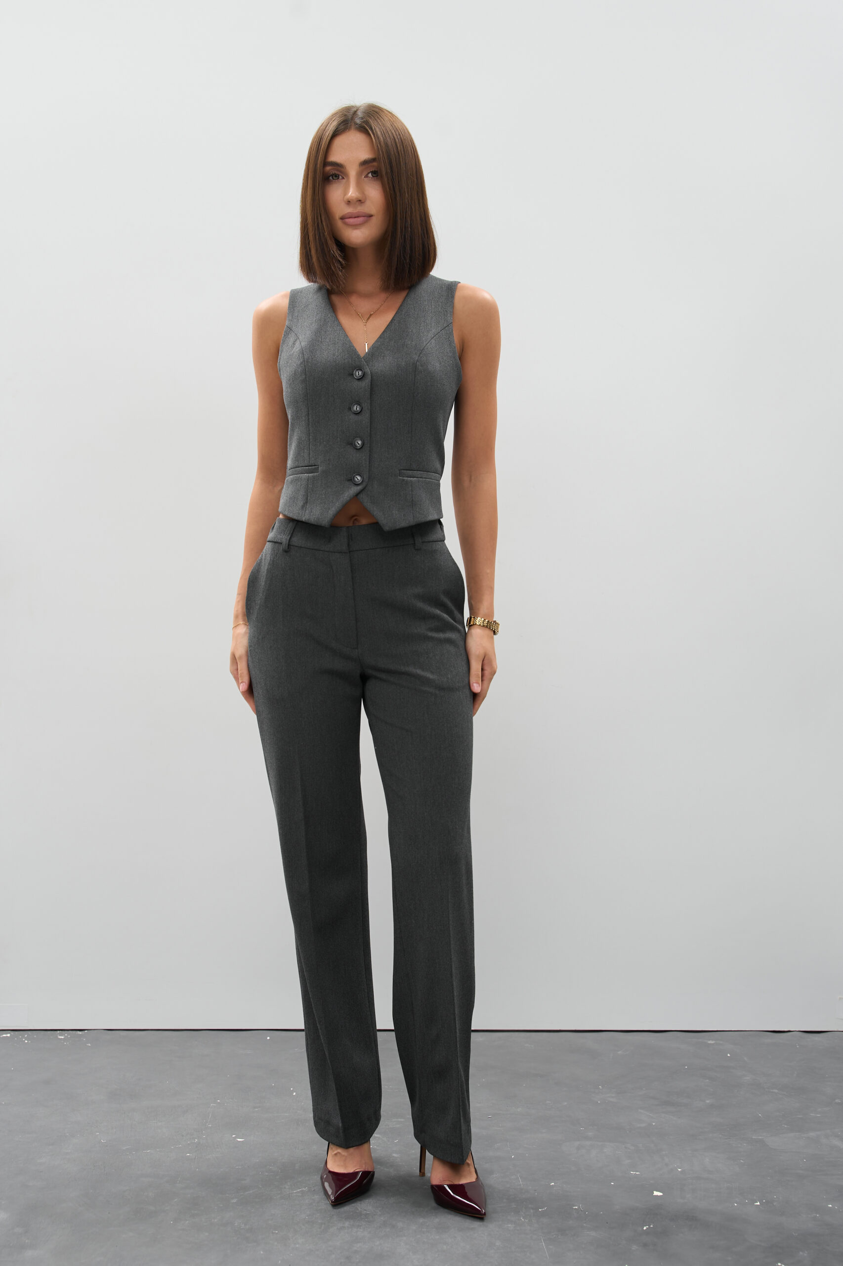 Прямі штани графітового кольору — сучасна класика, що підкреслює стиль