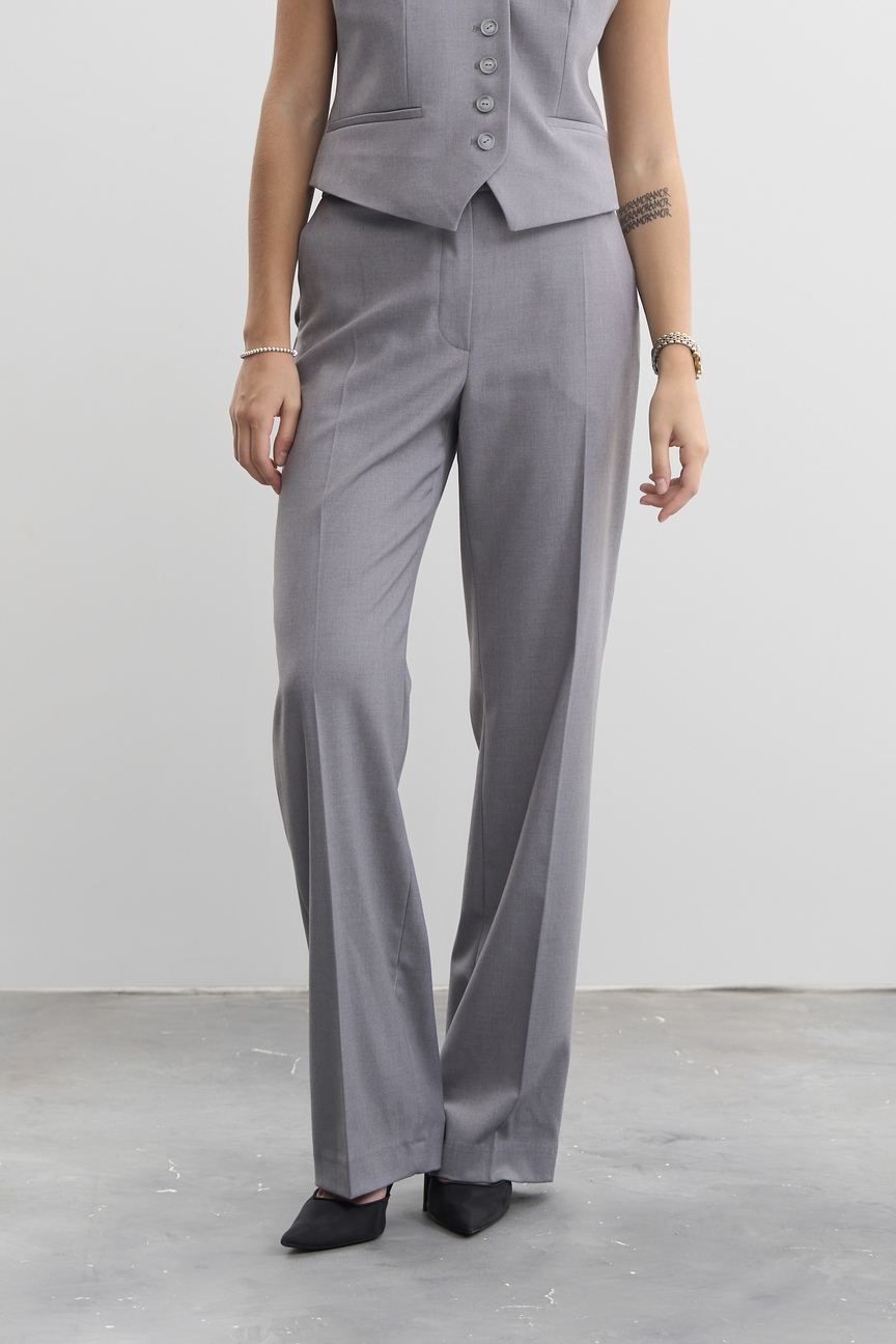 Ці штани мають класичний прямий крій, який забезпечує стильну та зручну посадку. Колір графіт додає елегантності та універсальності, дозволяючи легко поєднувати штани з різними елементами гардероба. Прямий крій ідеально підходить для створення як строгого, так і розслабленого образу.