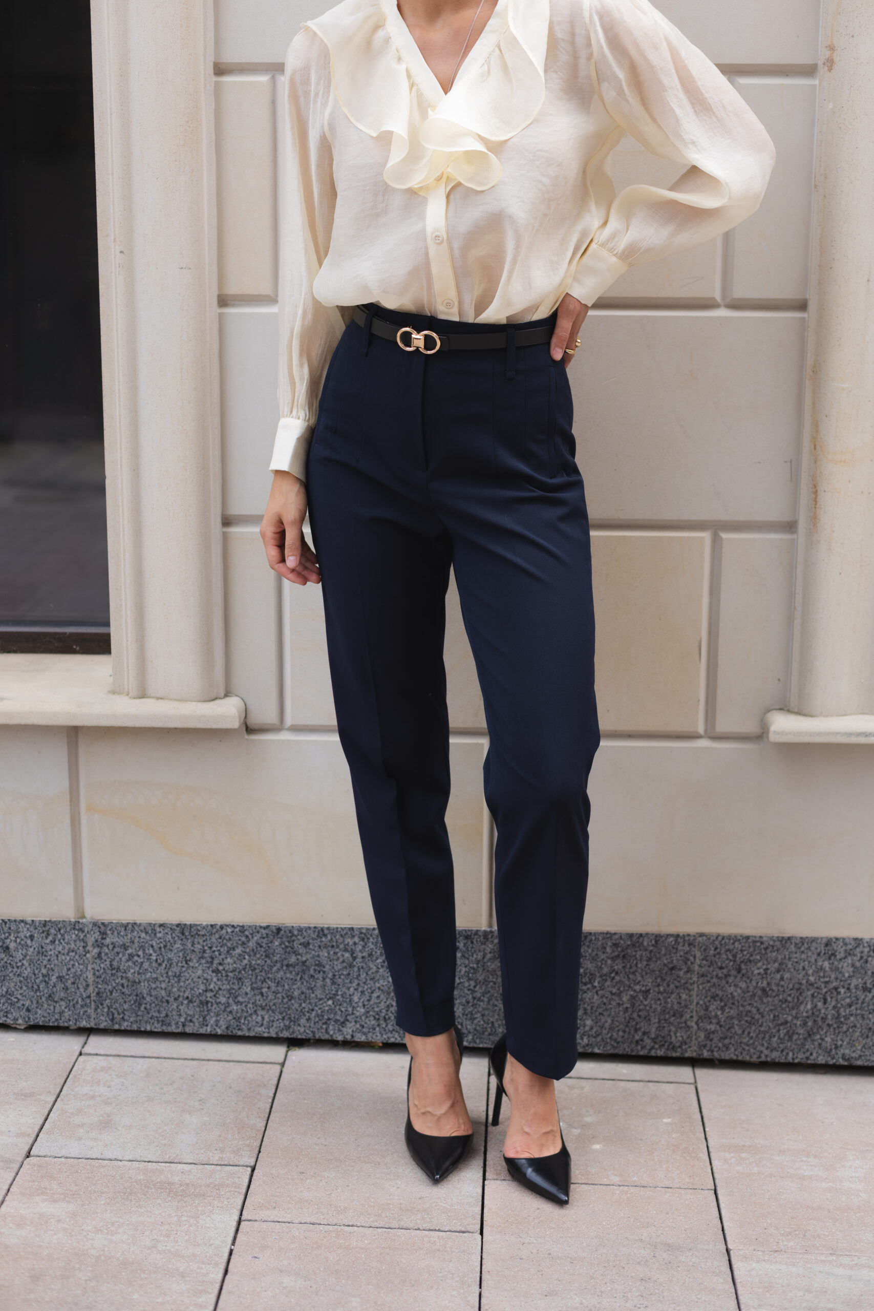 Для офісу: поєднуйте з класичною білою сорочкою, піджаком та лоферами.