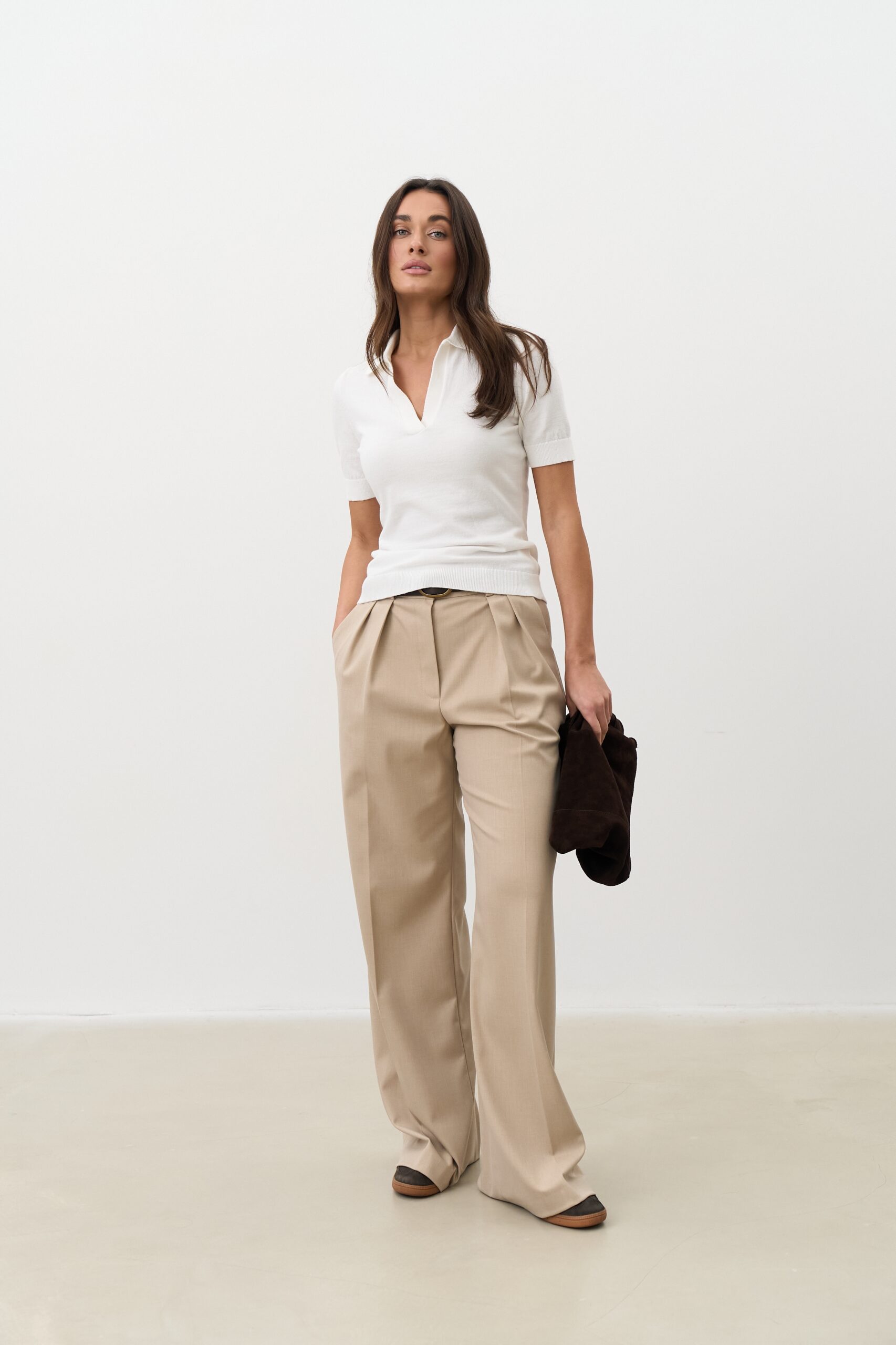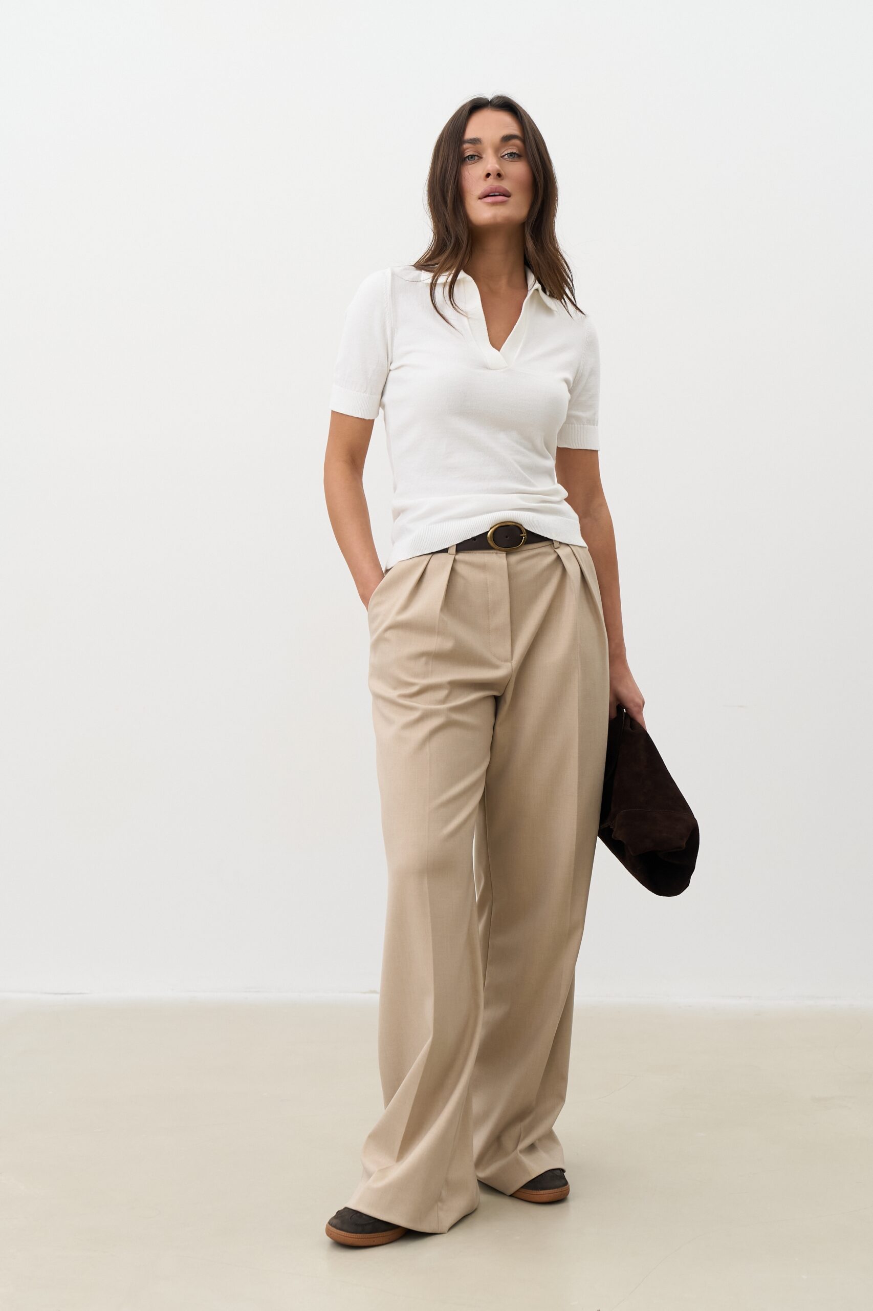 Як стилізувати штани палаццо пісочного кольору