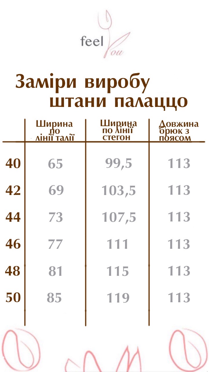 Модель доступна у розмірах 40–50. Завдяки еластичності тканини та продуманому крою, штани не сковують рухів і залишаються комфортними протягом усього дня, забезпечуючи гармонійний баланс між стилем і зручністю.