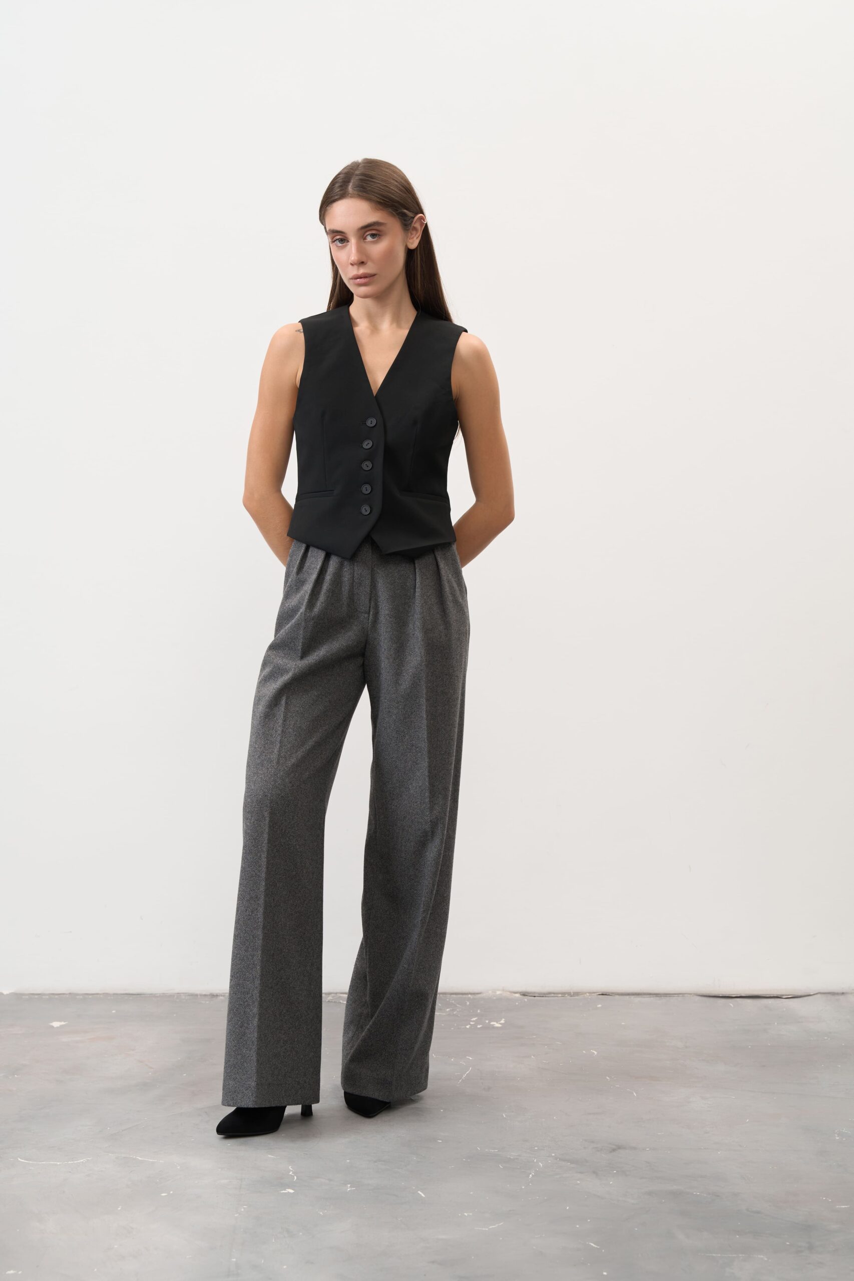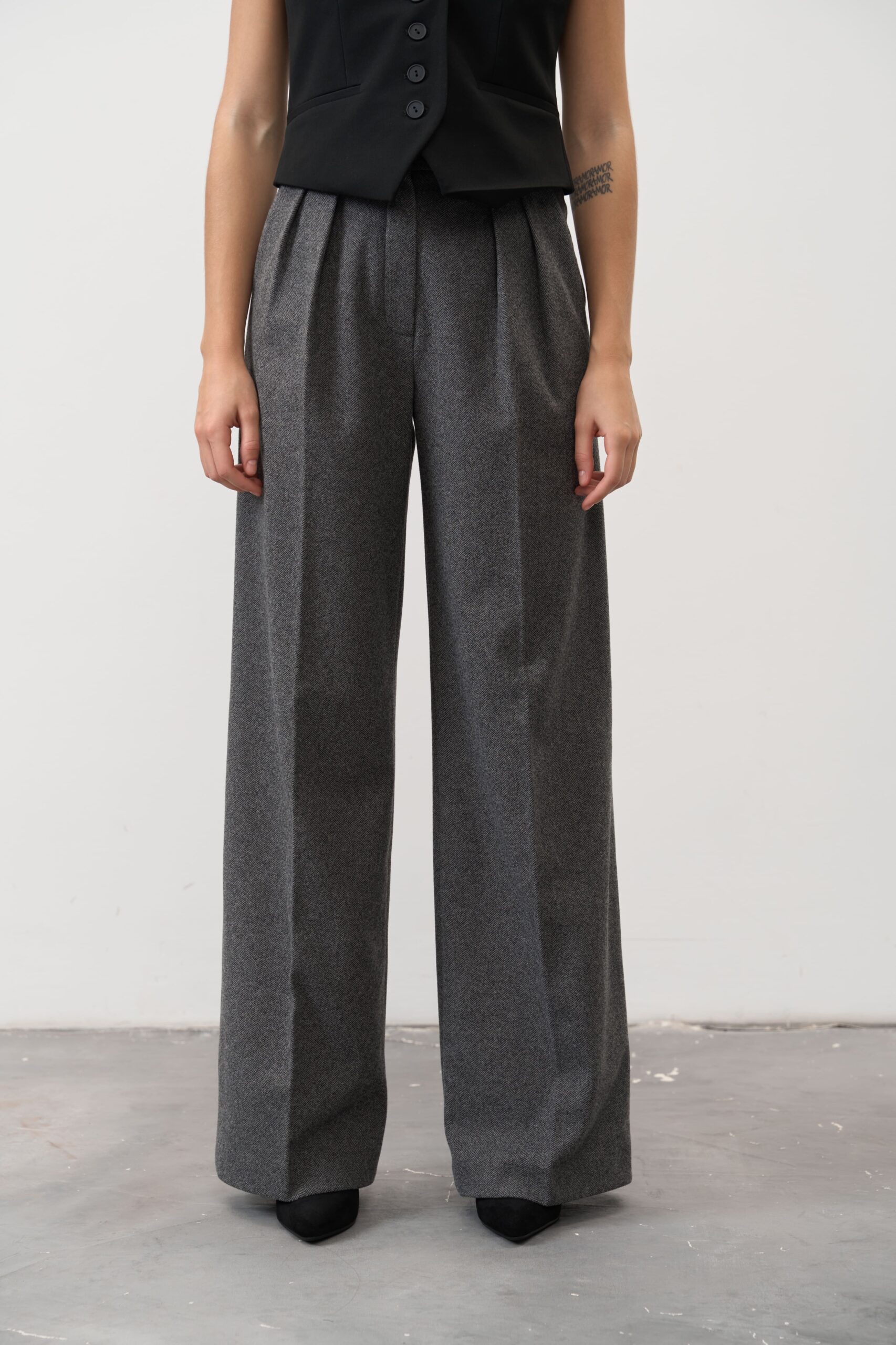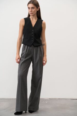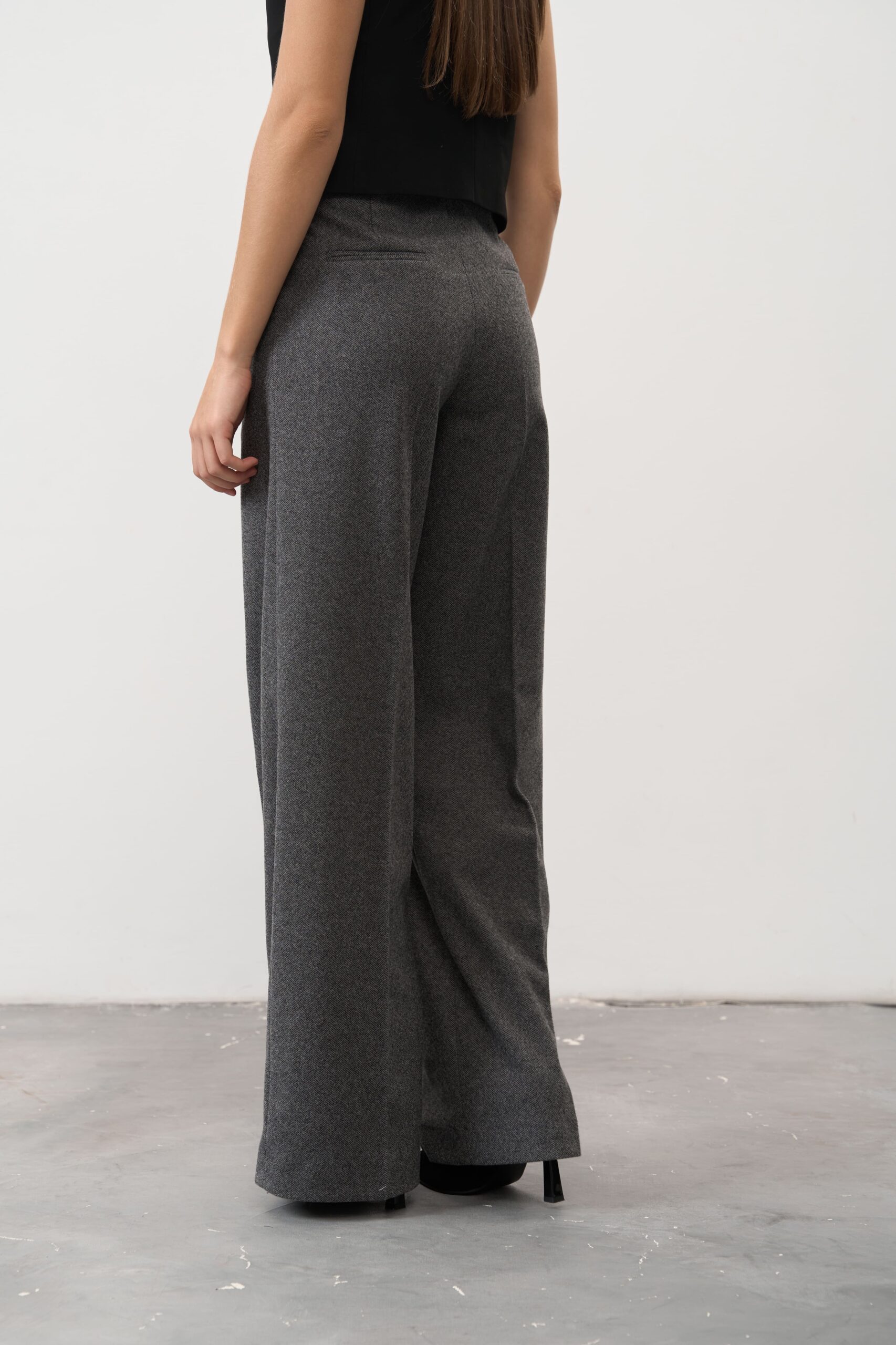 Якщо ти шукаєш універсальний елемент гардеробу, який поєднує тепло, стиль і свободу рухів, обирай жіночі штани палаццо графітового кольору. Це сучасна класика, яка створює витончений силует і залишається актуальною в будь-якому сезоні.