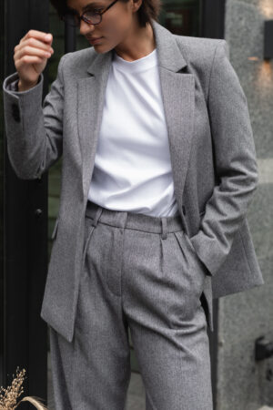 Глибокий сірий відтінок – це символ стриманої елегантності. Він легко комбінується з білим, чорним, графітовим, бежевим, бордовим і навіть пастельними тонами. Завдяки своїй універсальності сірі штани палаццо стануть базовим елементом жіночого зимового гардеробу, який підходить для будь-якої події – від роботи до відпочинку.