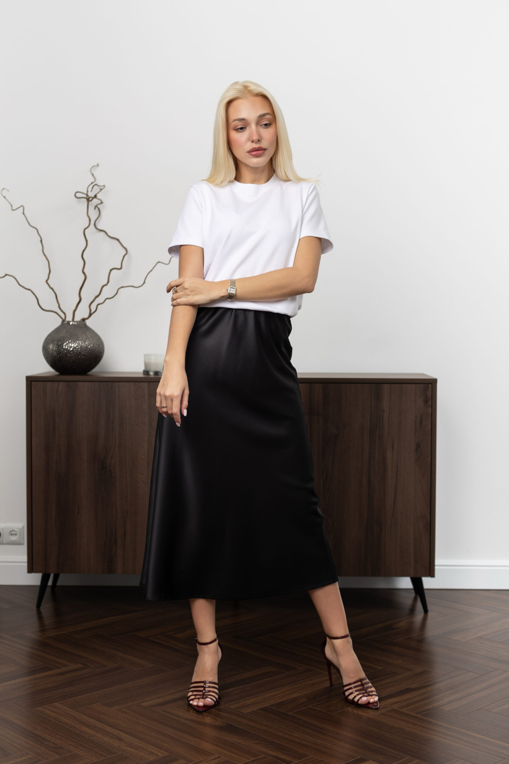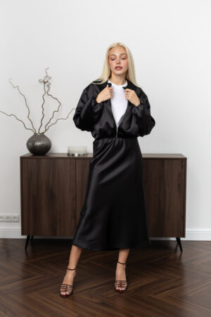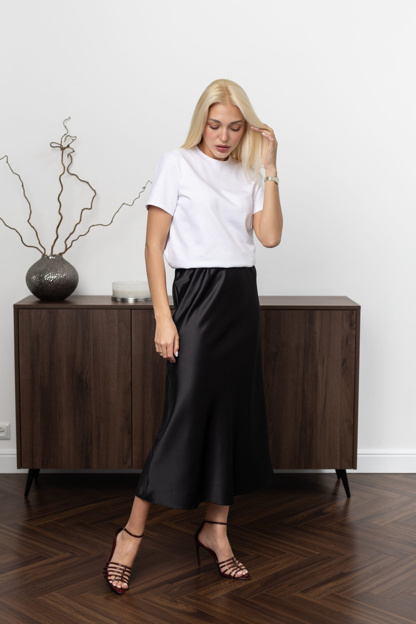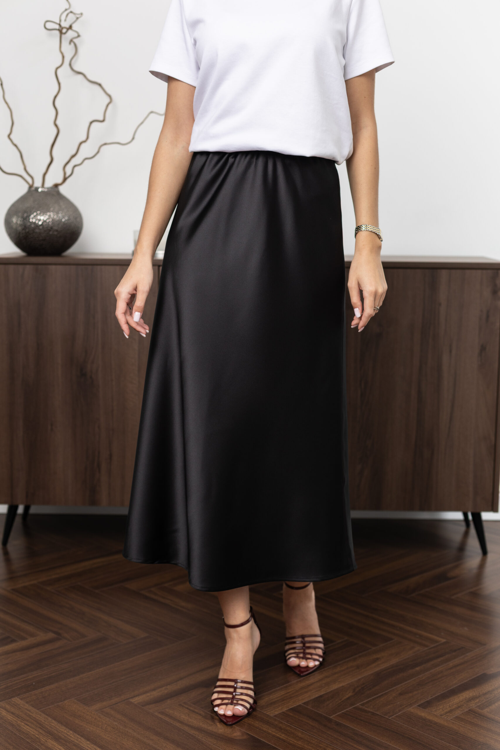 Чорна атласна спідниця — це той елемент гардероба, що ідеально пасуватиме до будь-якого настрою. Надягайте її з лаконічною футболкою та кросівками для casual-образу, або комбінуйте з жакетом і босоніжками для вечірнього виходу.