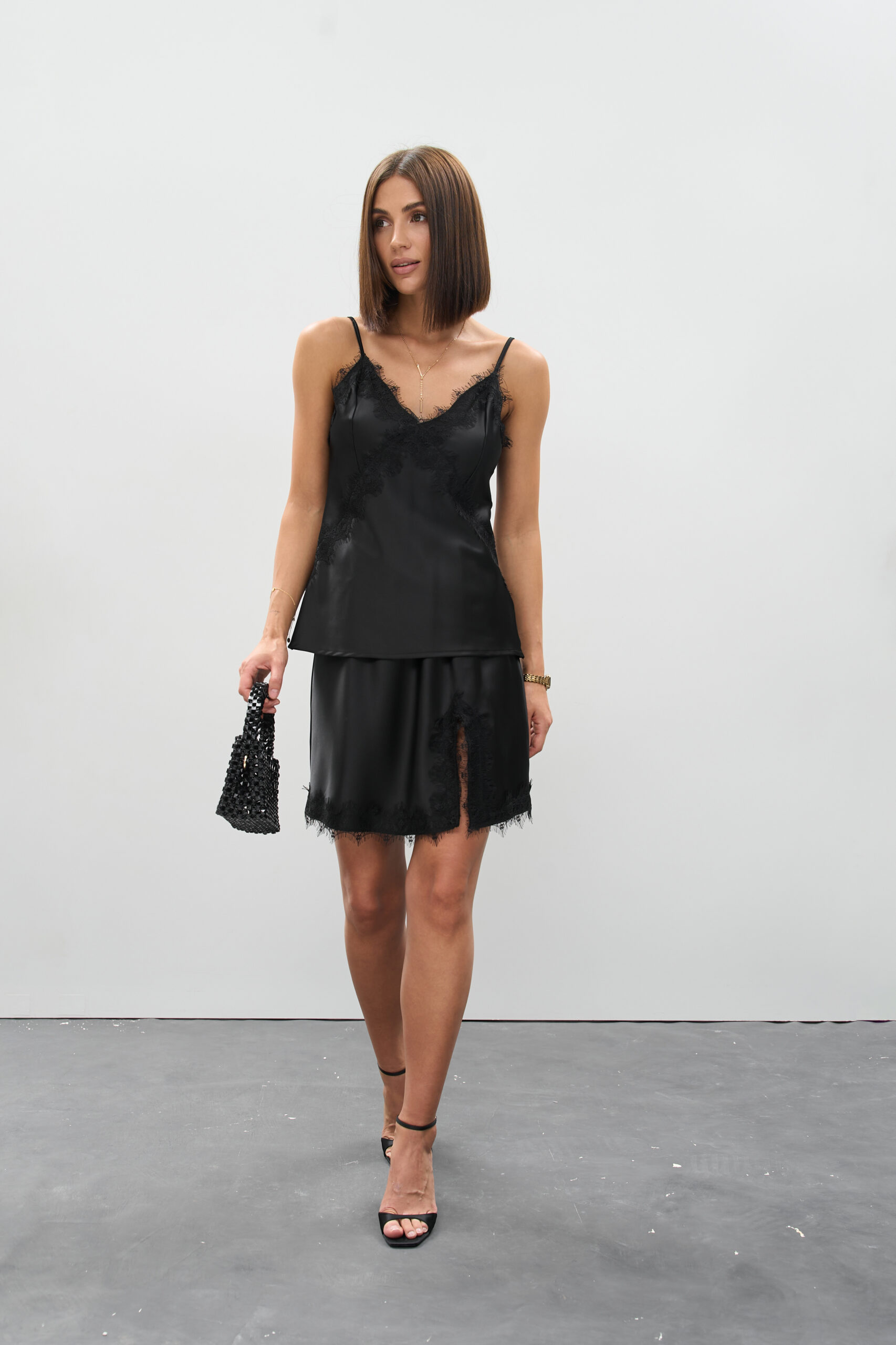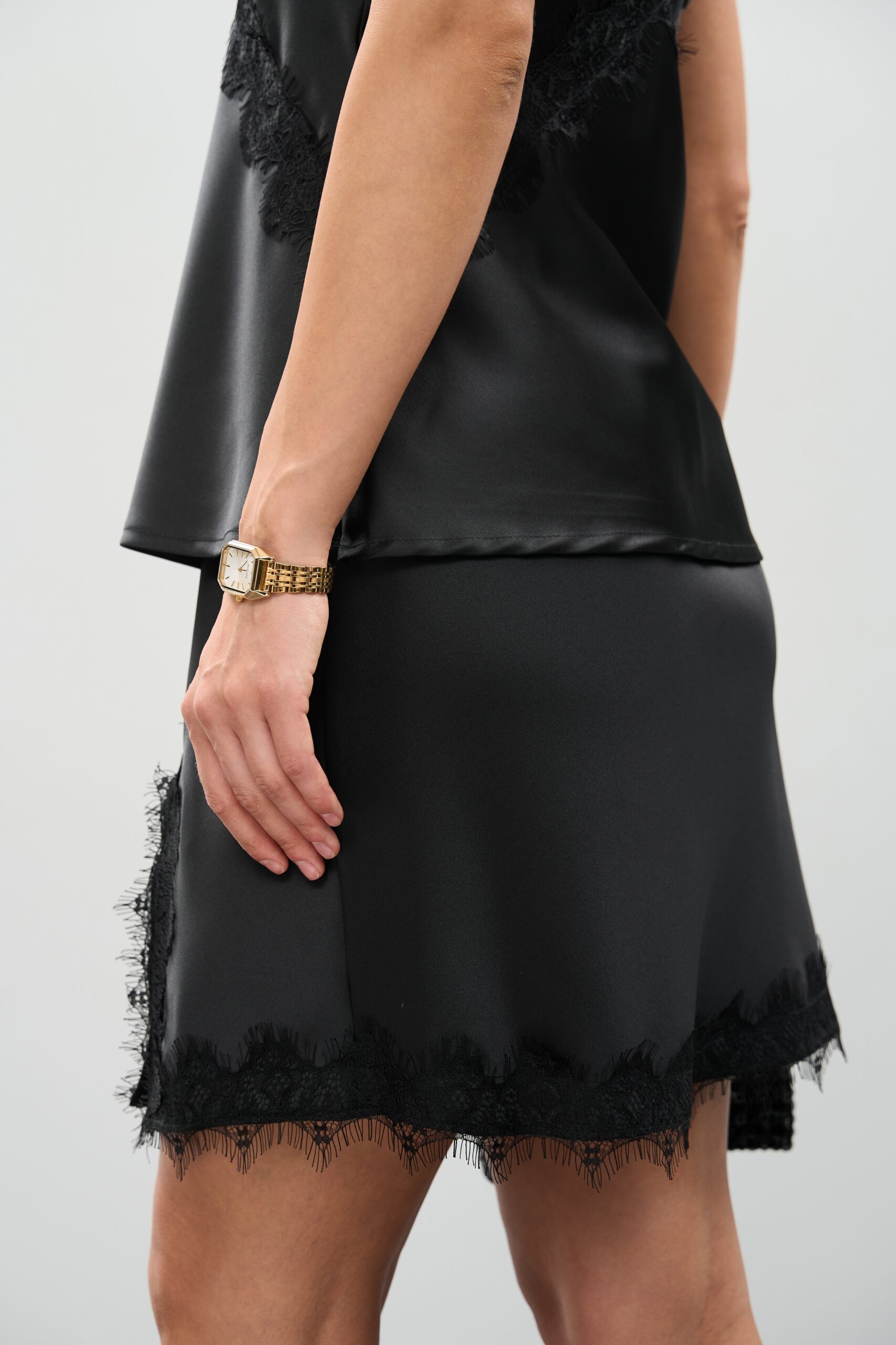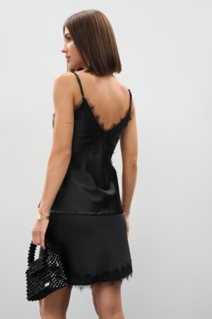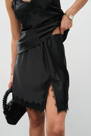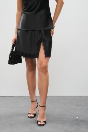 Атласна спідниця міні чорного кольору з мереживом — класика елегантності та сучасний шарм