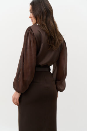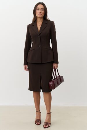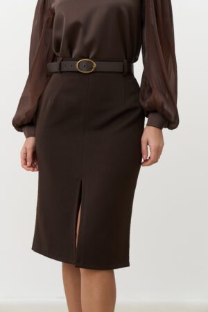 Шоколадна спідниця-олівець з розрізом — благородна класика та жіночна елегантність