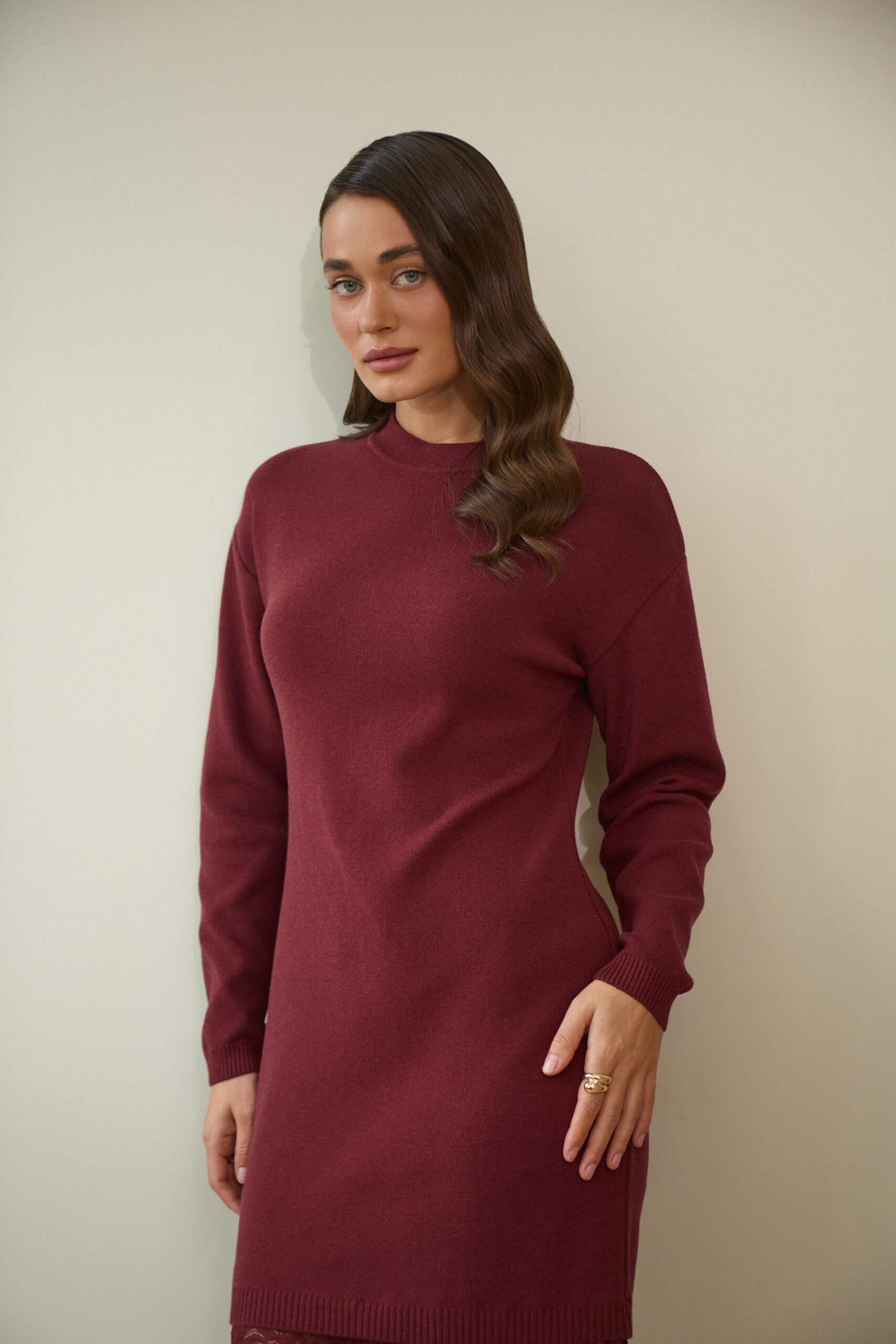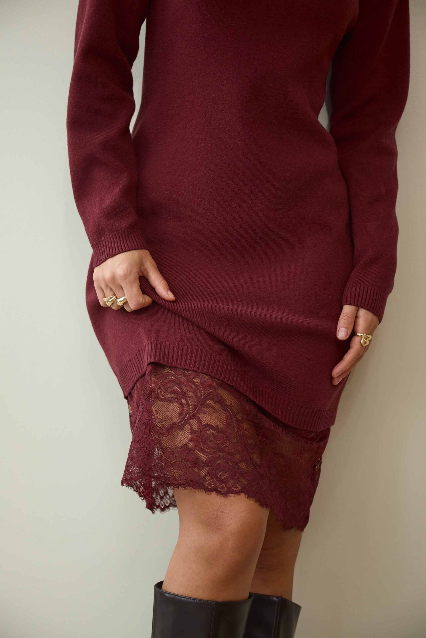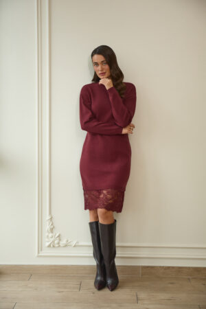Жіноча в’язана сукня з мереживом у кольорі бургунді — витонченість, жіночність і комфорт у кожному русі