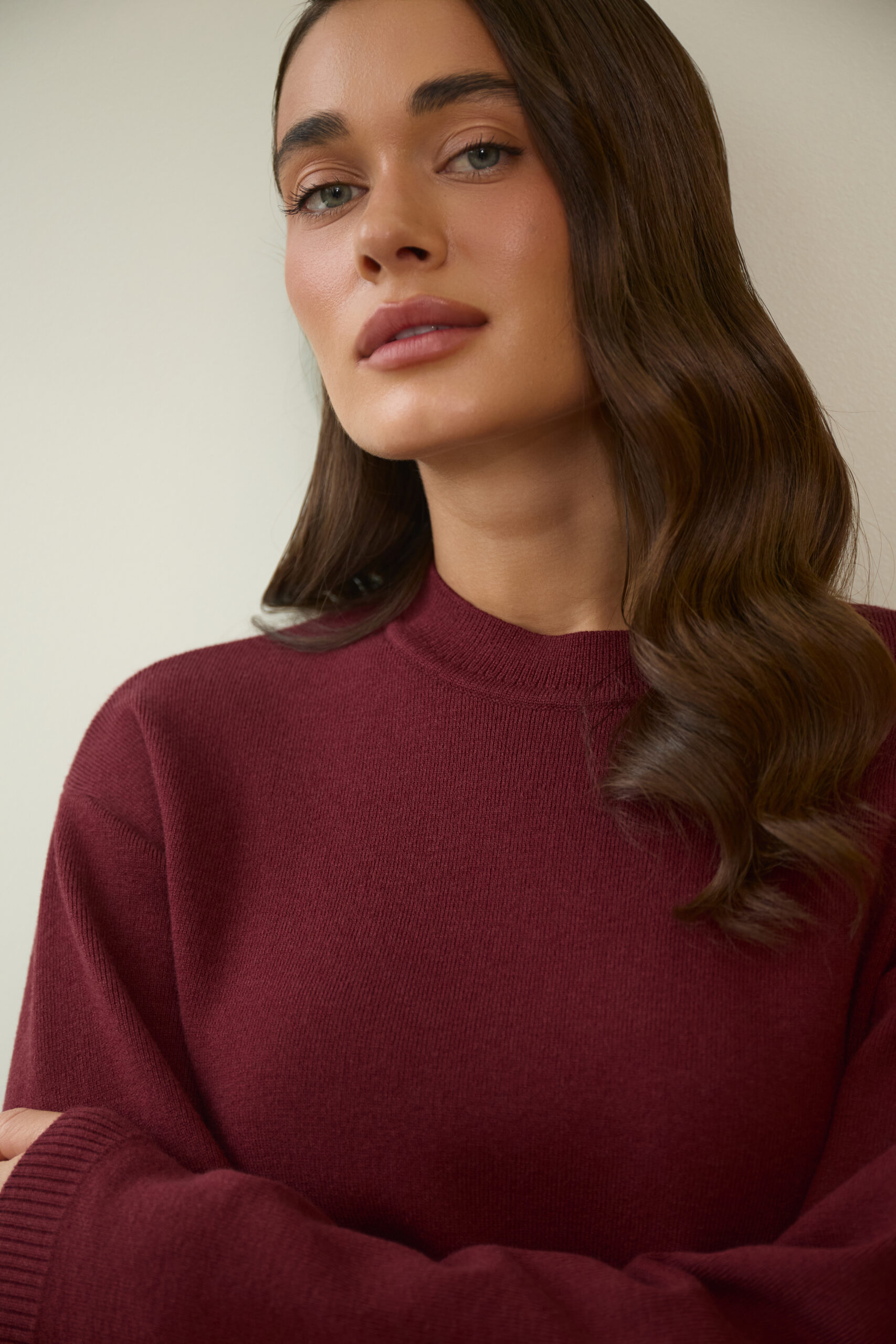 Колір бургунді підкреслює жіночність і додає глибини образу.