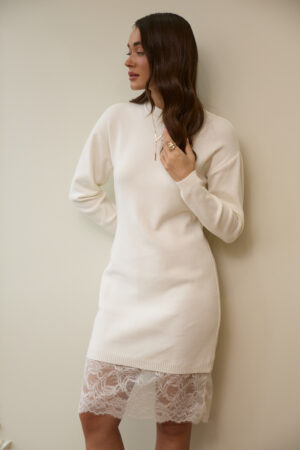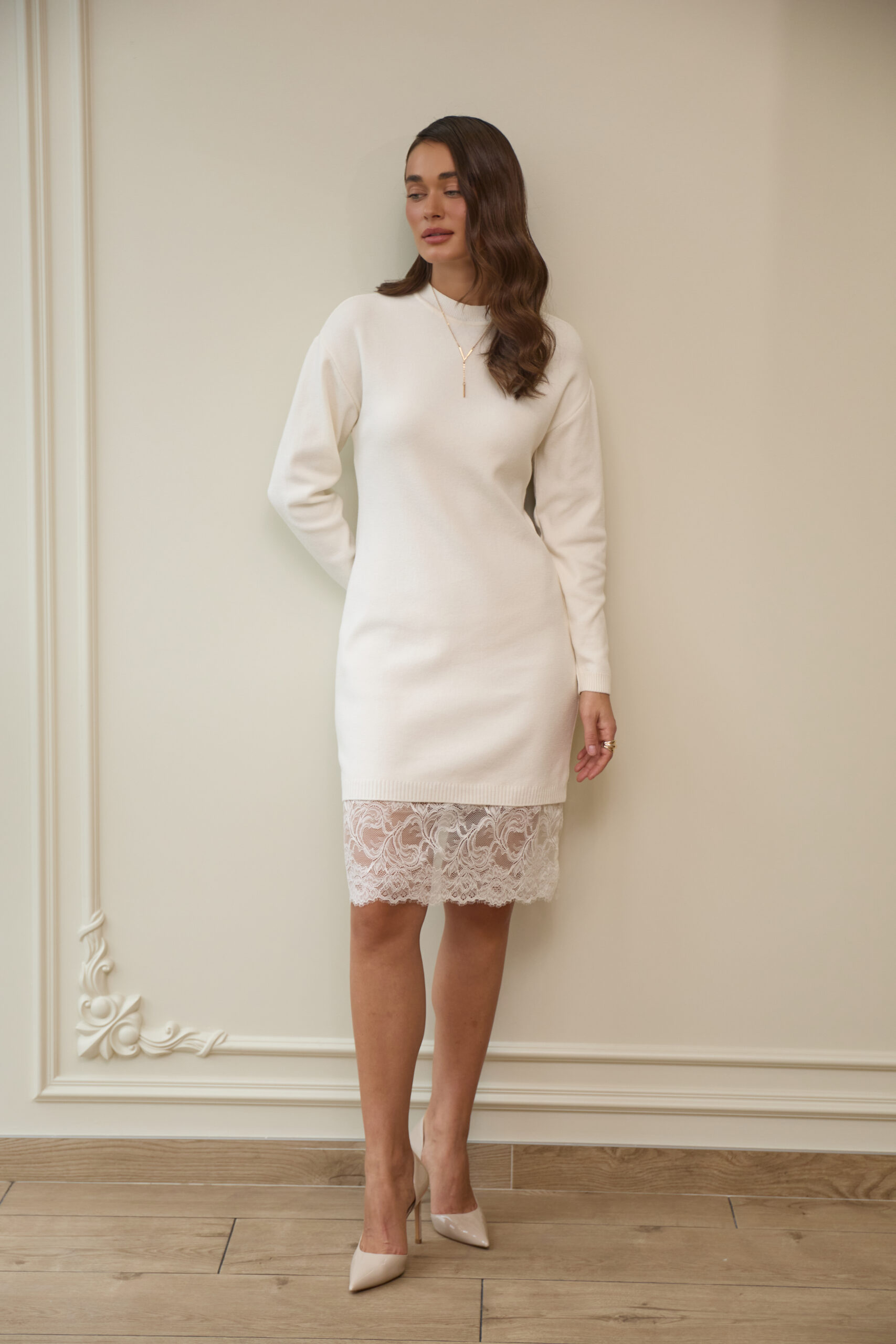 Жіноча в’язана сукня з мереживом у кольорі молоко — ніжність, комфорт і вишуканість у кожній деталі