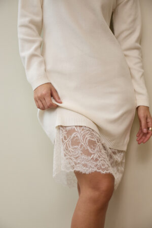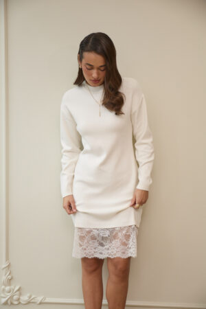 Жіноча в’язана сукня з мереживом у кольорі молоко — це універсальний варіант для сучасної жінки, яка цінує комфорт, стиль і натуральну красу. Легка, елегантна й надзвичайно жіночна — вона стане справжньою окрасою вашого гардеробу.
