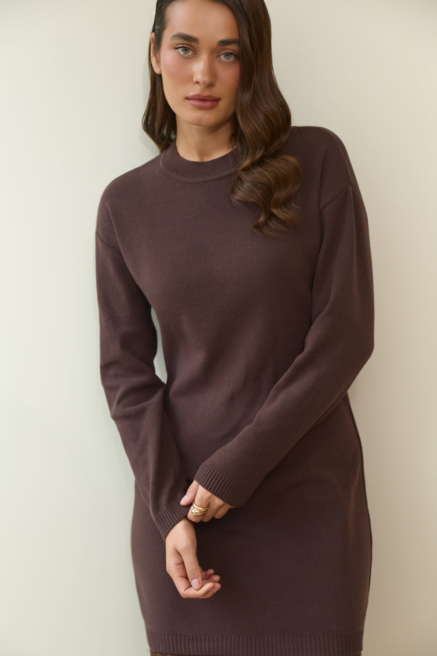 Жіноча сукня у глибокому шоколадному відтінку — це поєднання стриманої розкоші, ніжності та комфорту. Колір, натхненний природною теплістю какао, додає образу вишуканості та затишку, чудово пасує для осінньо-зимового сезону. Завдяки продуманому крою й витонченому мереживному оздобленню по низу, ця модель виглядає неймовірно жіночно та елегантно.
