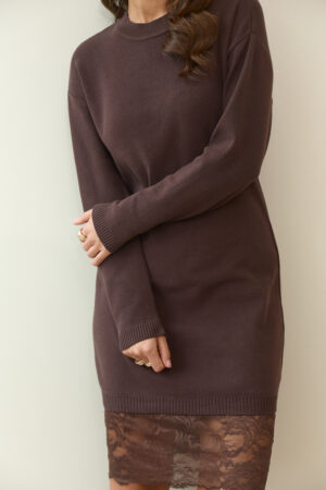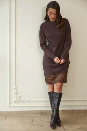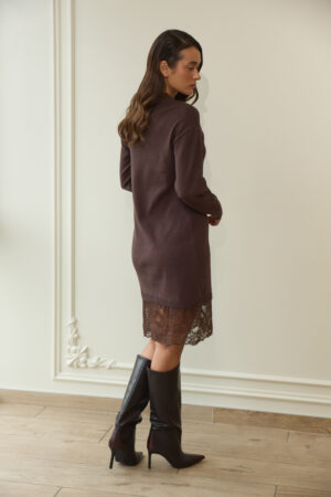 Жіноча в’язана сукня з мереживом у кольорі шоколад — гармонія тепла, стилю та елегантності