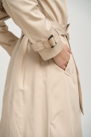 Підкладка з нейлону робить тренч ще більш комфортним та зручним для носіння, забезпечуючи додатковий захист від вітру та дощу.