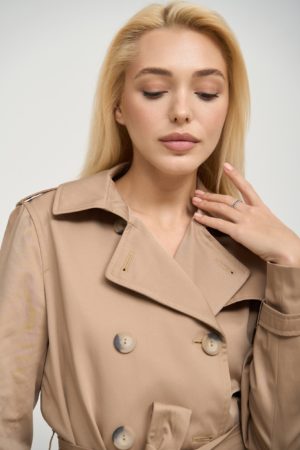 Тренч має класичний А-силует, злегка розширений до низу, що додає жіночності та витонченості. Доступний у різноманітних кольорах, таких як крем, лате, сафарі, карамель, мокко, небесний, фісташка, перлина та чорний, він підійде для будь-якого гардеробу та настрою.