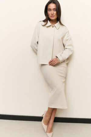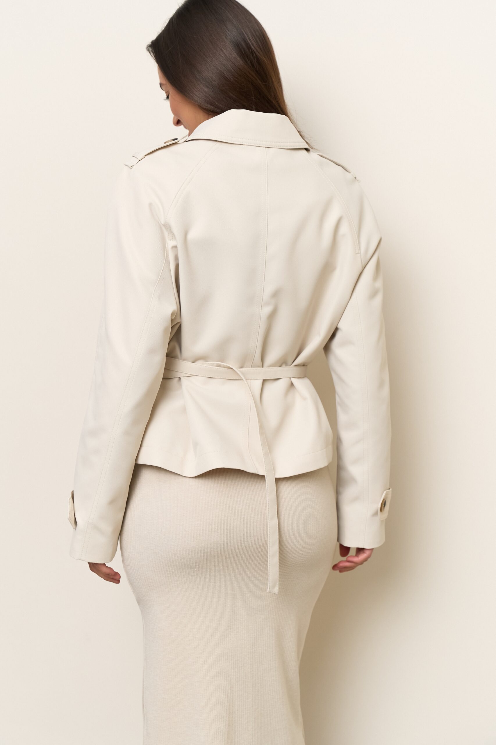 - Вкорочений жіночий тренч кольору лате