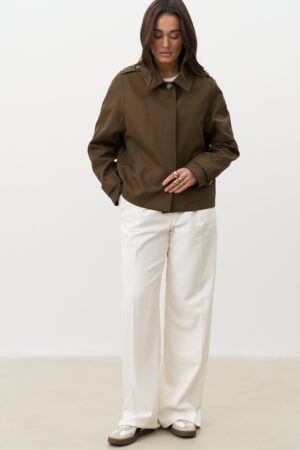 Жіночий тренч кольору табак — це стильна альтернатива класичним нейтральним відтінкам. Глибокий теплий тон із карамельно-коричневим підтоном виглядає виразно, благородно та водночас універсально. Такий вкорочений тренч легко інтегрується в базовий гардероб і стане акцентом як у ділових, так і в повсякденних образах.