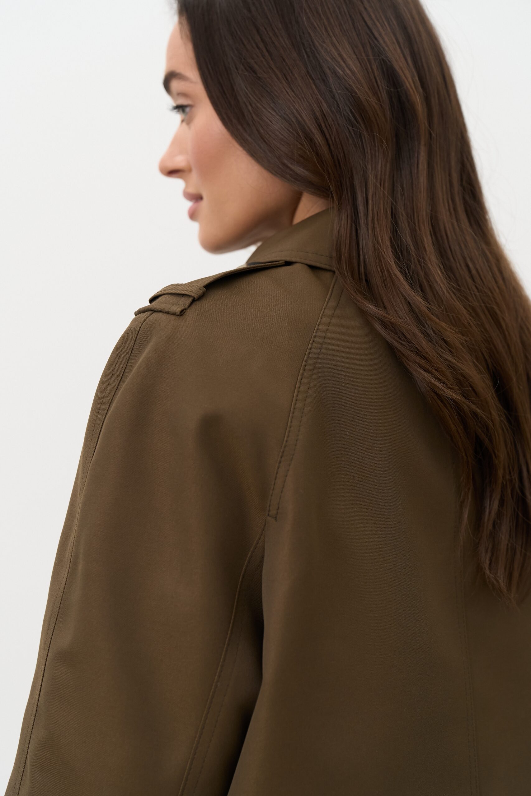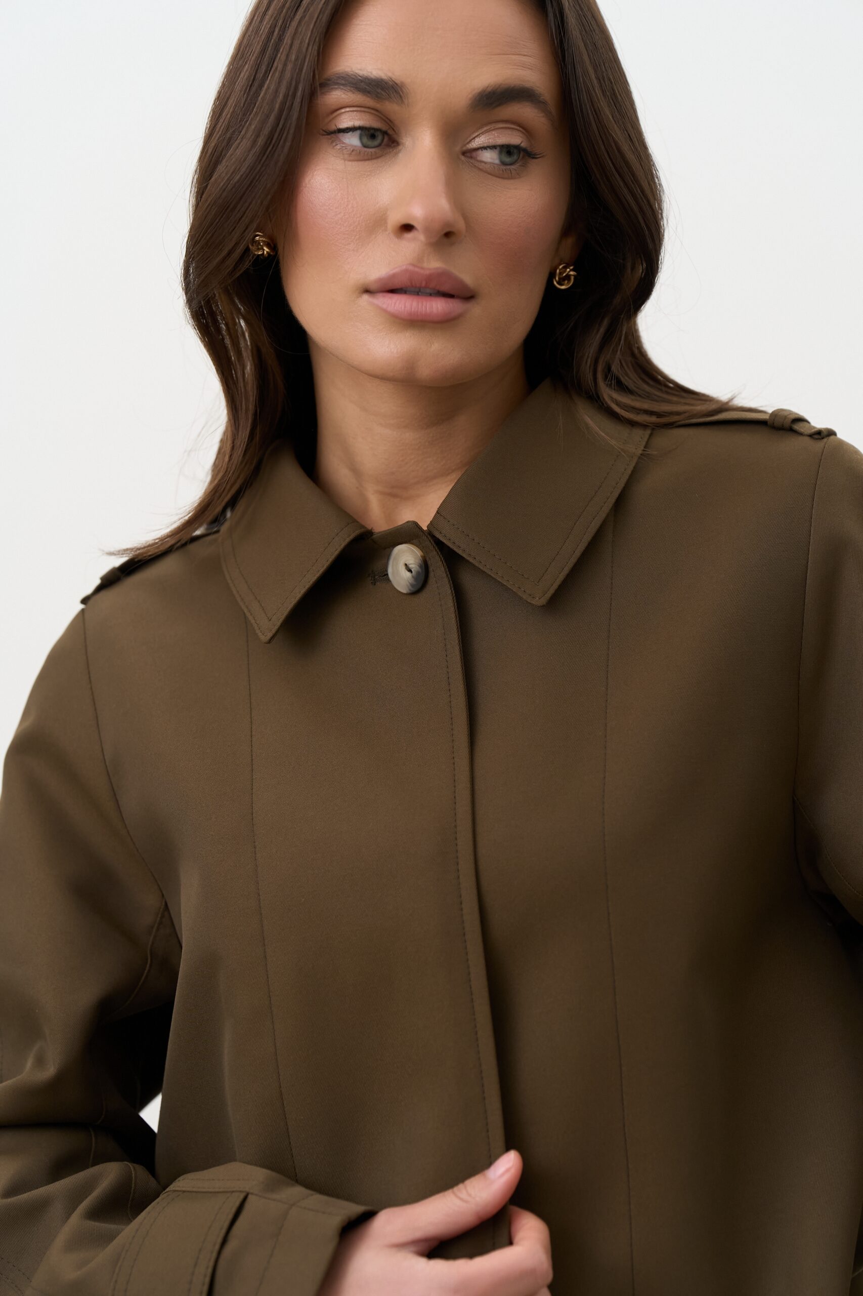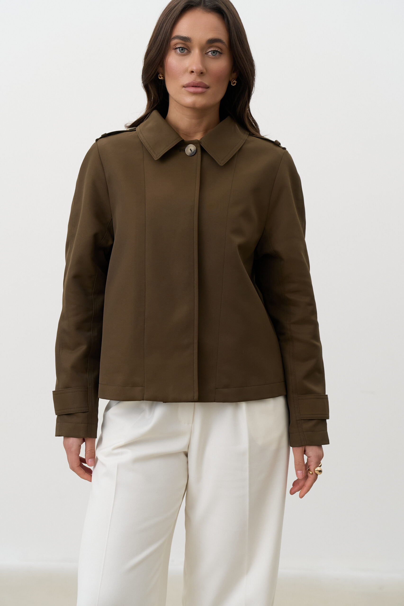 Вкорочений базовий тренч кольору табак — тепла глибина та характер у кожній деталі