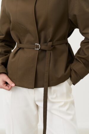 Знімний пояс дозволяє регулювати посадку — формувати більш структурований або розслаблений образ.