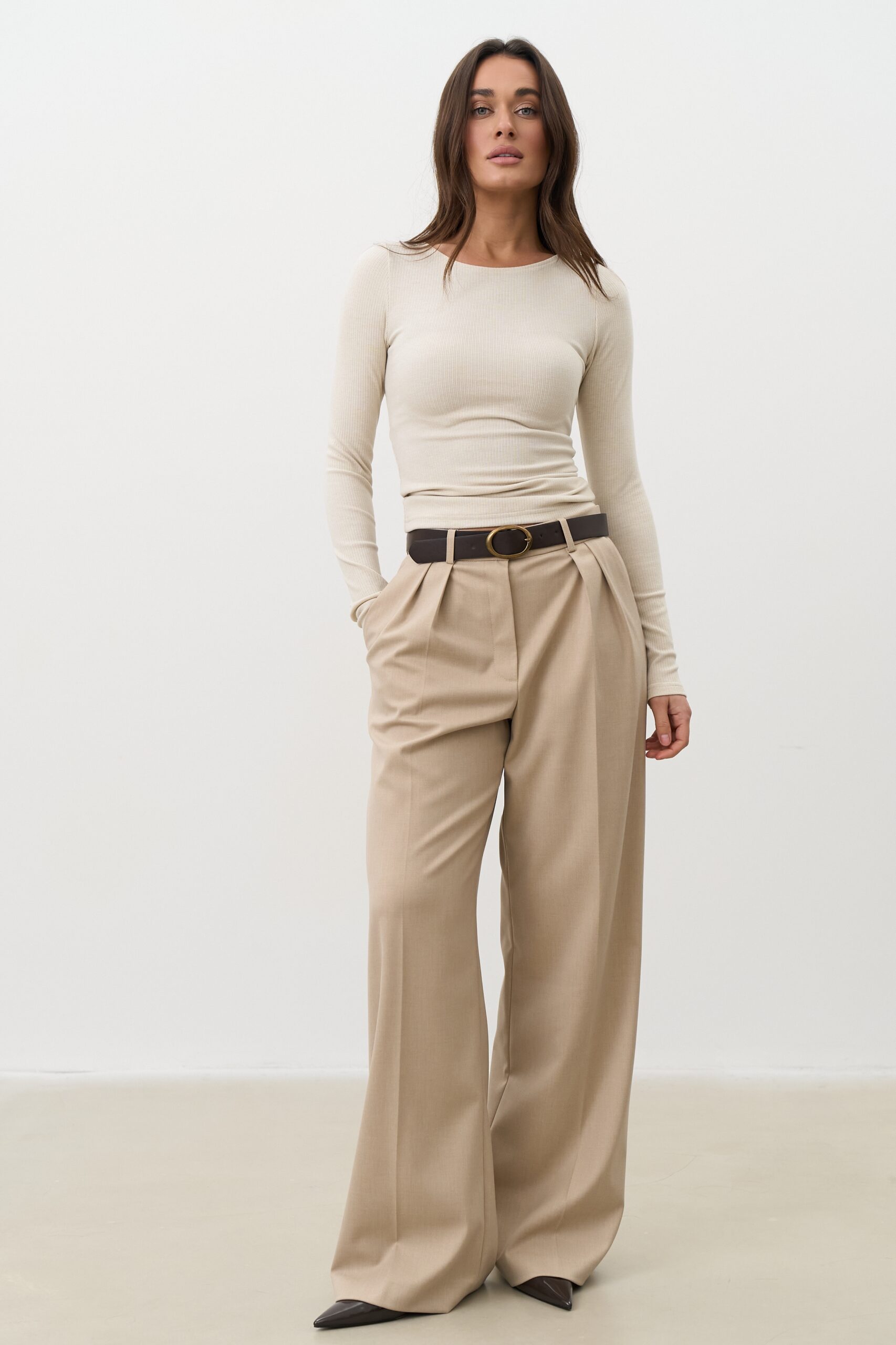 Універсальний бежевий топ для базового гардероба