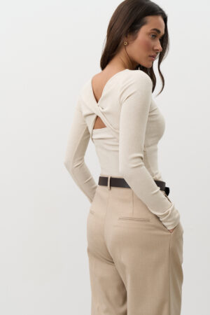 Жіночий бежевий топ з акцентною спинкою — природна елегантність і сучасний мінімалізм