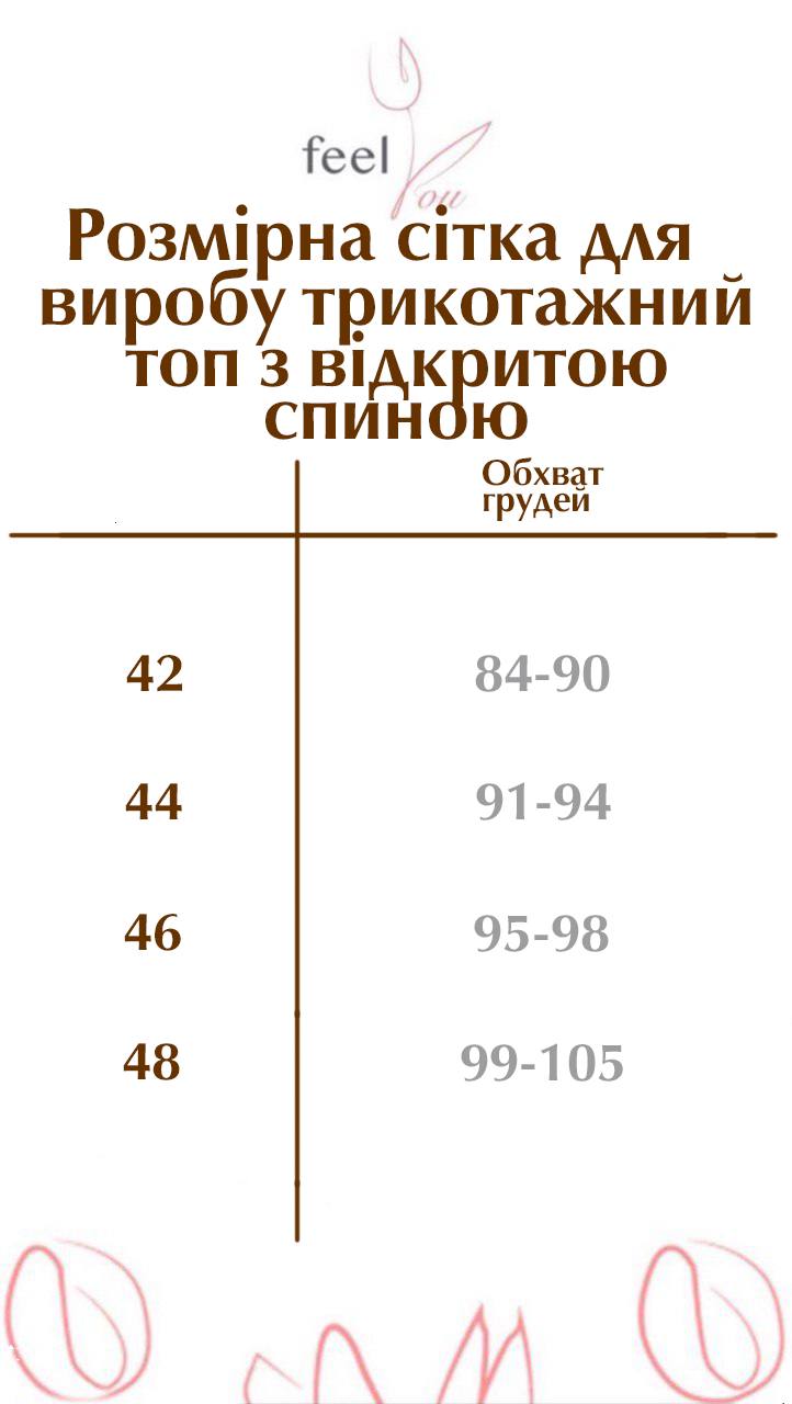 Приталений силует красиво підкреслює фігуру, створюючи акуратний і жіночний образ. Лаконічна передня частина з класичною округлою горловиною врівноважує акцентну спинку, роблячи топ універсальним та доречним у різних стилях.