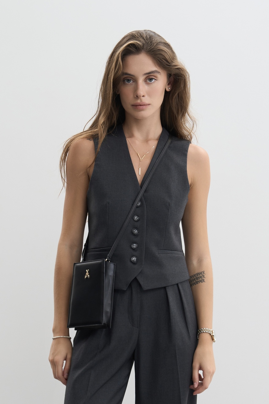 Ця класична чорна жилетка ідеально підходить для створення різних образів: